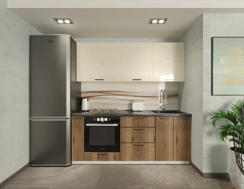 Прямая кухня «Эльза» ДСП 1.8 м, дуб крафт белый/дуб крафт табачный