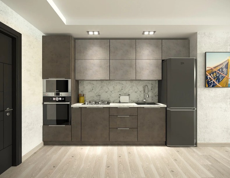 Вы можете включить в проект дополнительные опции: подсветка, мойка, смеситель, скинали, кухонную технику.