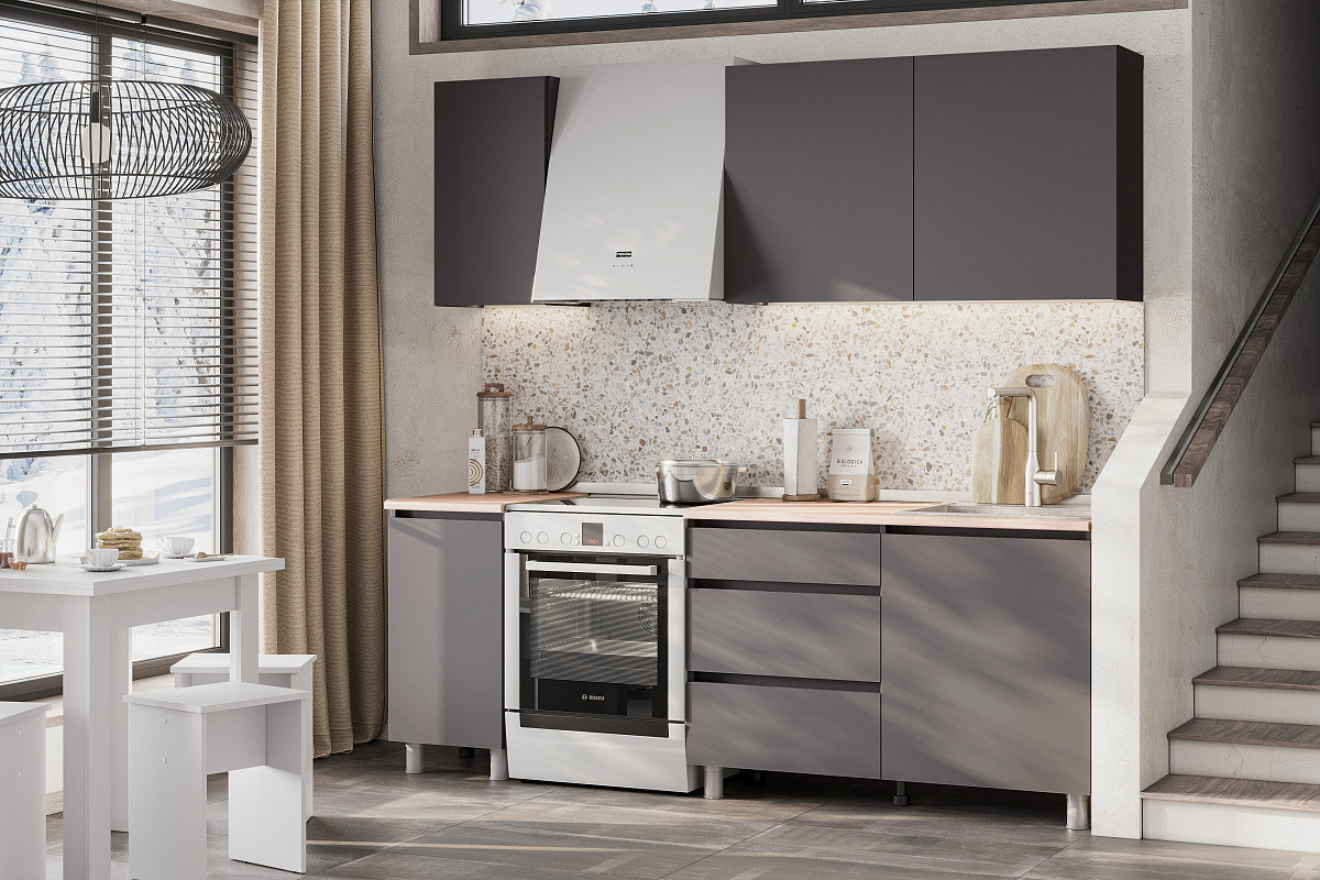 Кухня «Денвер (1.6м)» Графит серый/Дуб Сонома