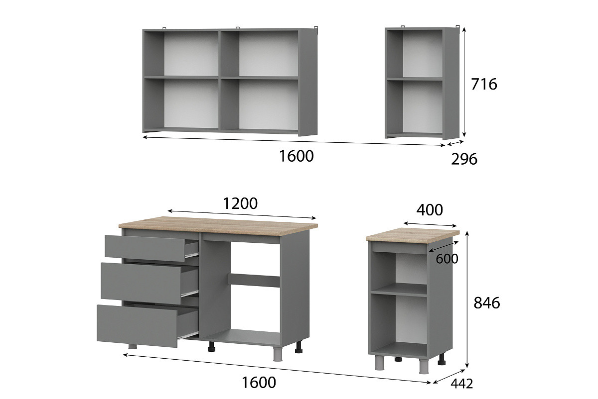 код 148009Размер кухни: 1600 мм. Материал: ЛДСП. Фасады без ручек.