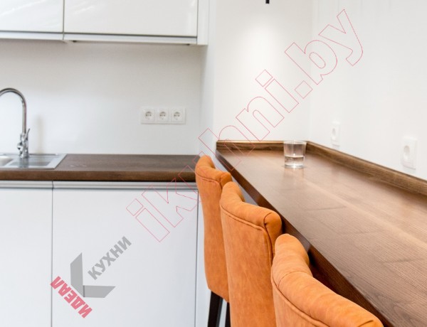 Современная кухня глянцевого белого цвета с обеденной зоной