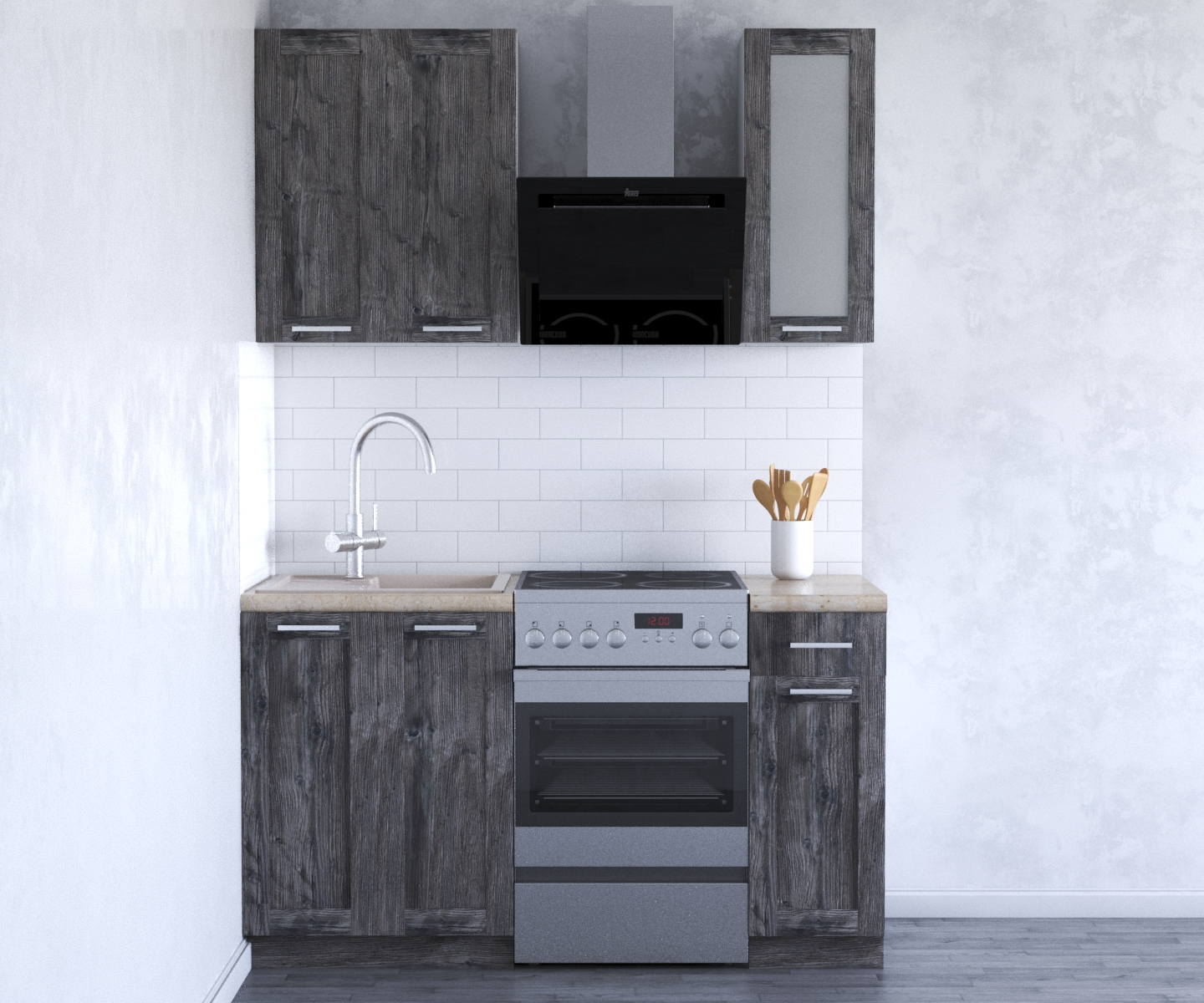 Готовая угловая кухня размером 1,5x2,3 метра. Фасады из ЛДСП двух цветов.