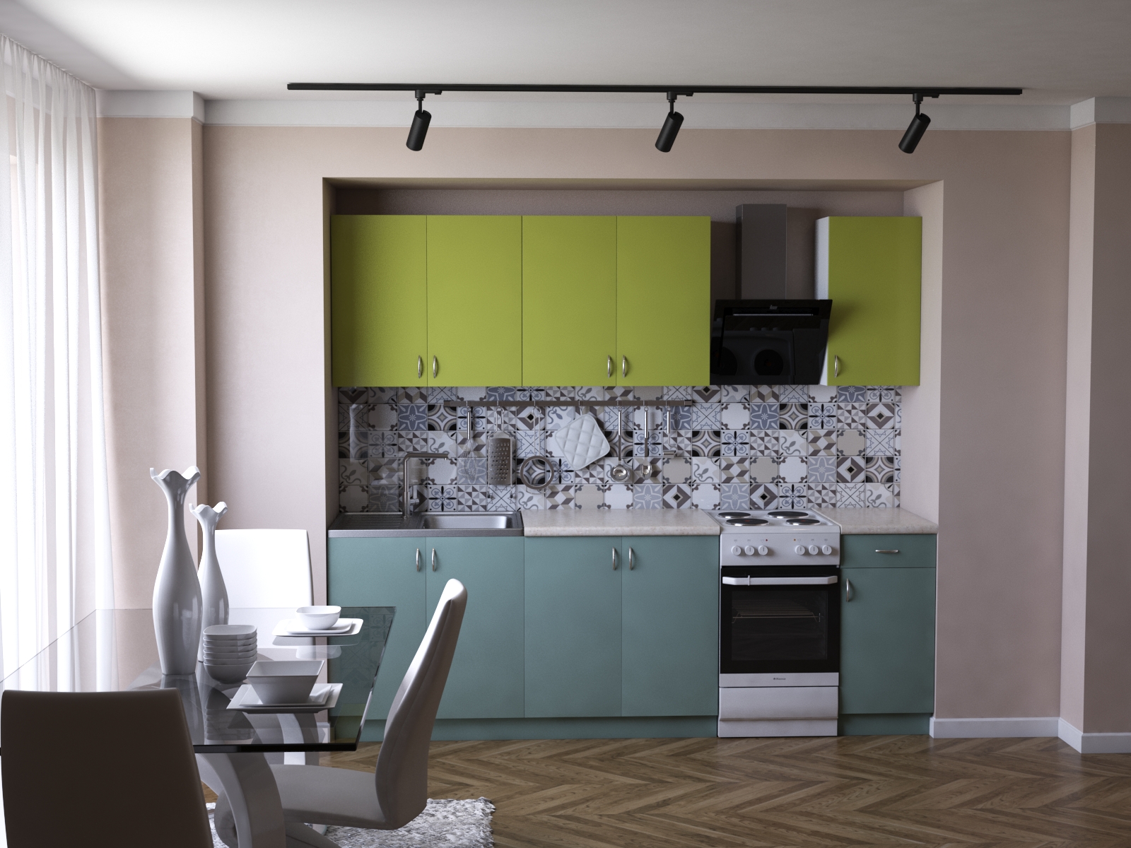 Прямая кухня «Оля» МДФ 1.4 м, зеленое яблоко/черный жемчуг