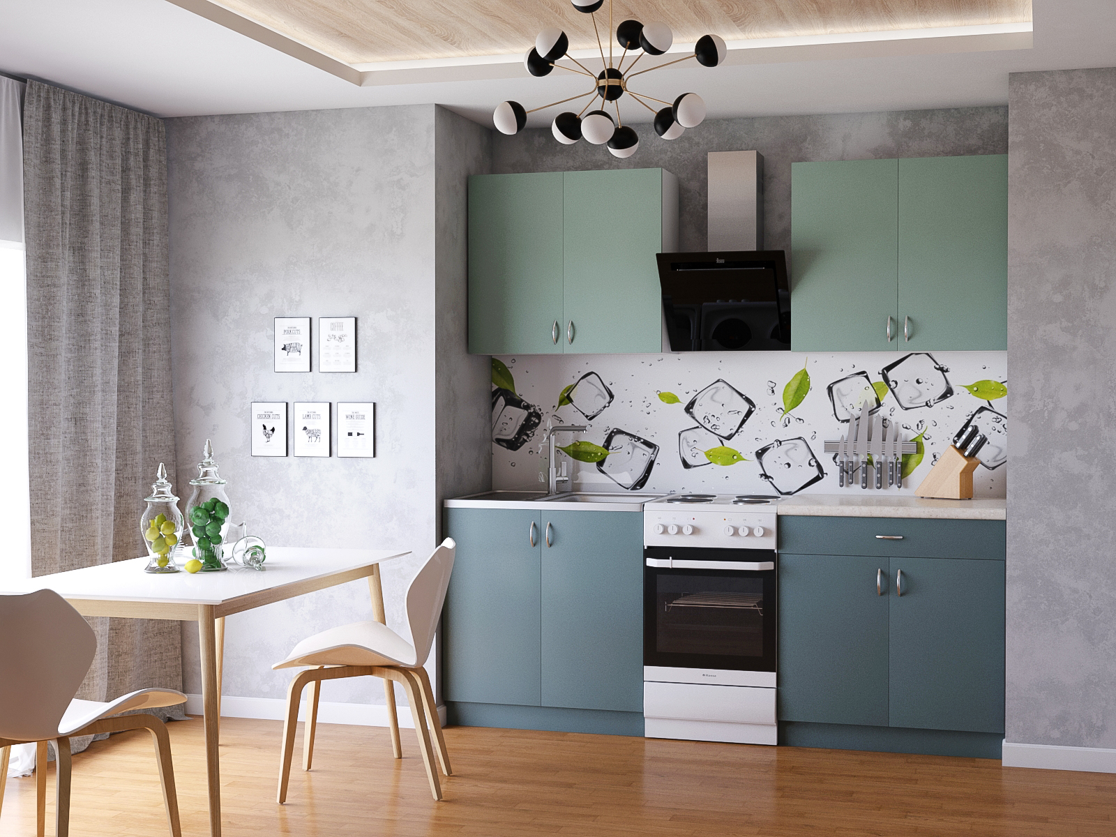Кухня «Лира-Лайт» 1,3 салатовый-оникс