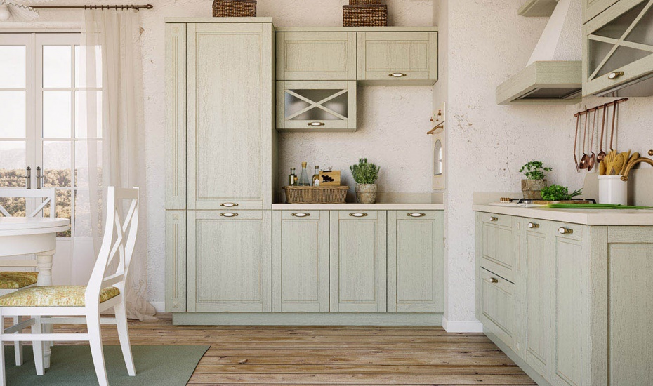 Кухня в стиле «кантри»: оригинальный дизайн дверей, прошлифовка на уголках, выборка древесины на элементах рамки - удачно подчёркивает фактуру натуральной древесины и стилевое решение кухни "Эри" в целом. По количеству возможных вариантов отделки фасада, изготовленного из массива дуба, не уступает модели «Симона».