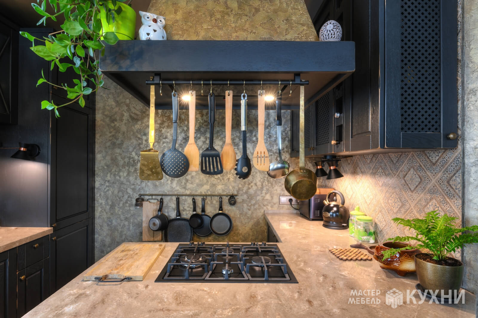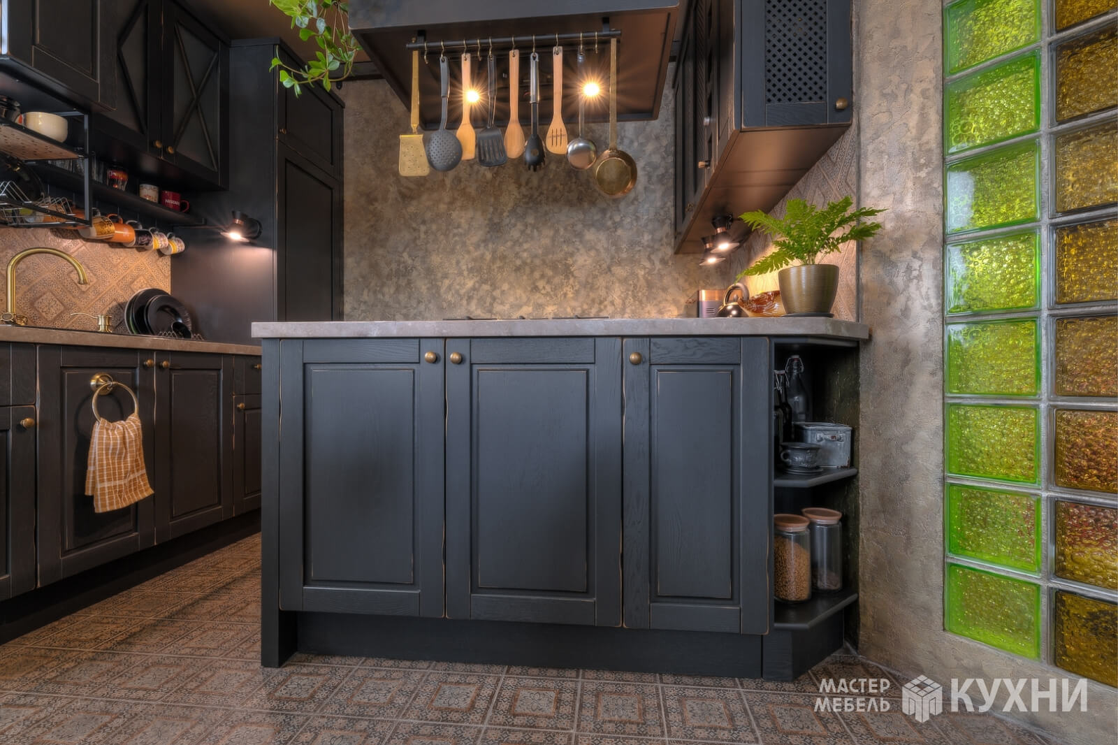 Для размещения кухонной утвари предусмотрены закрытые полки и 3 шуфляды.