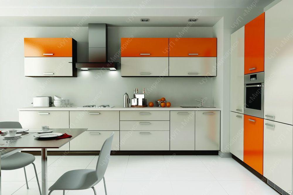 Кухня длиной 200 см. Стильное сочетание цветов фасада.