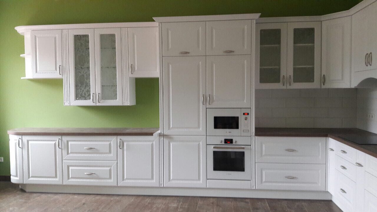 Матовая угловая кухня в неоклассическом стиле