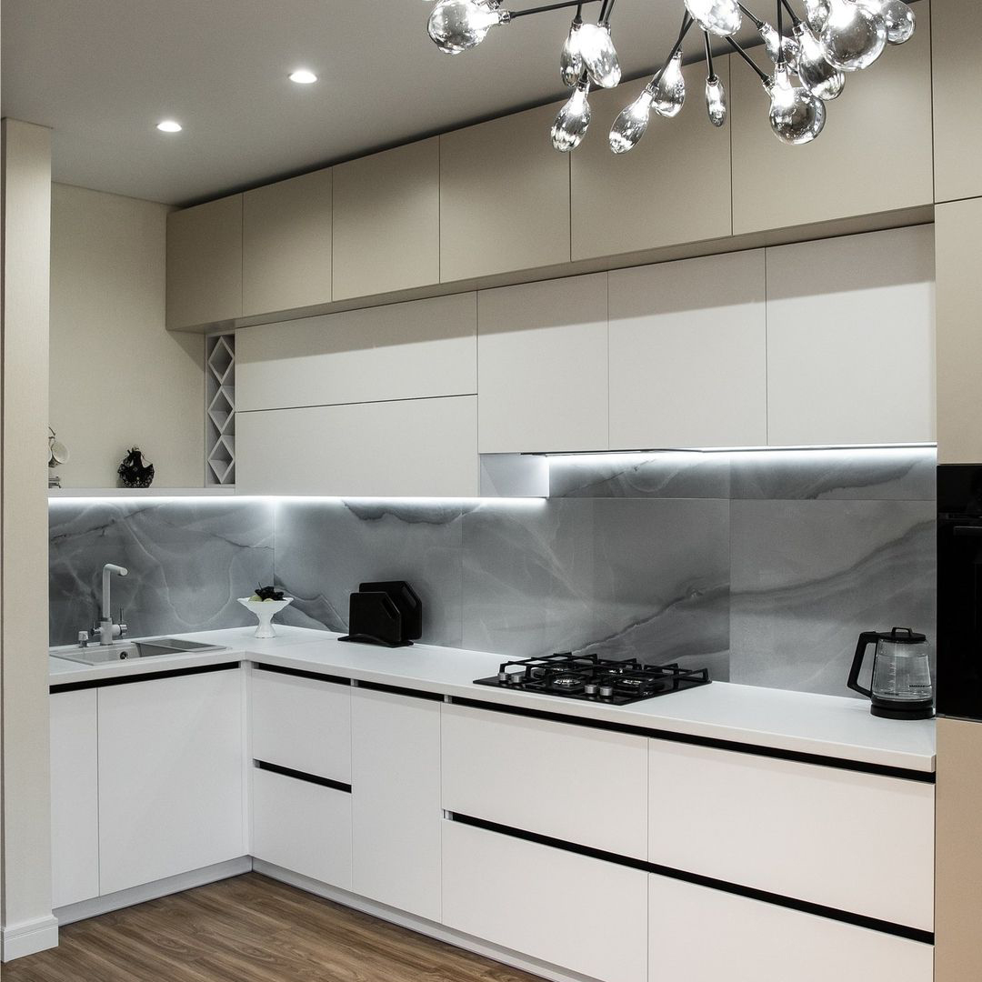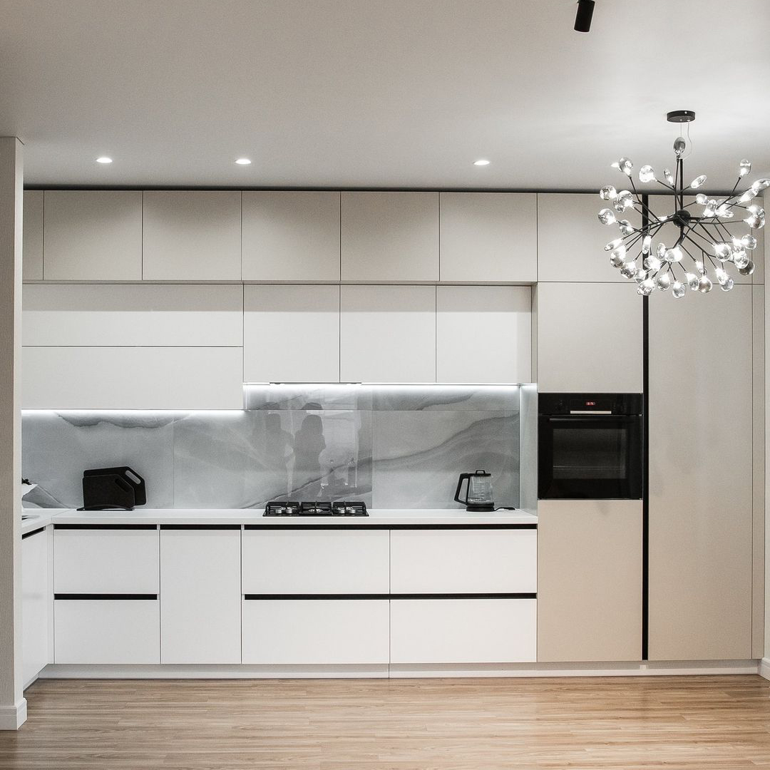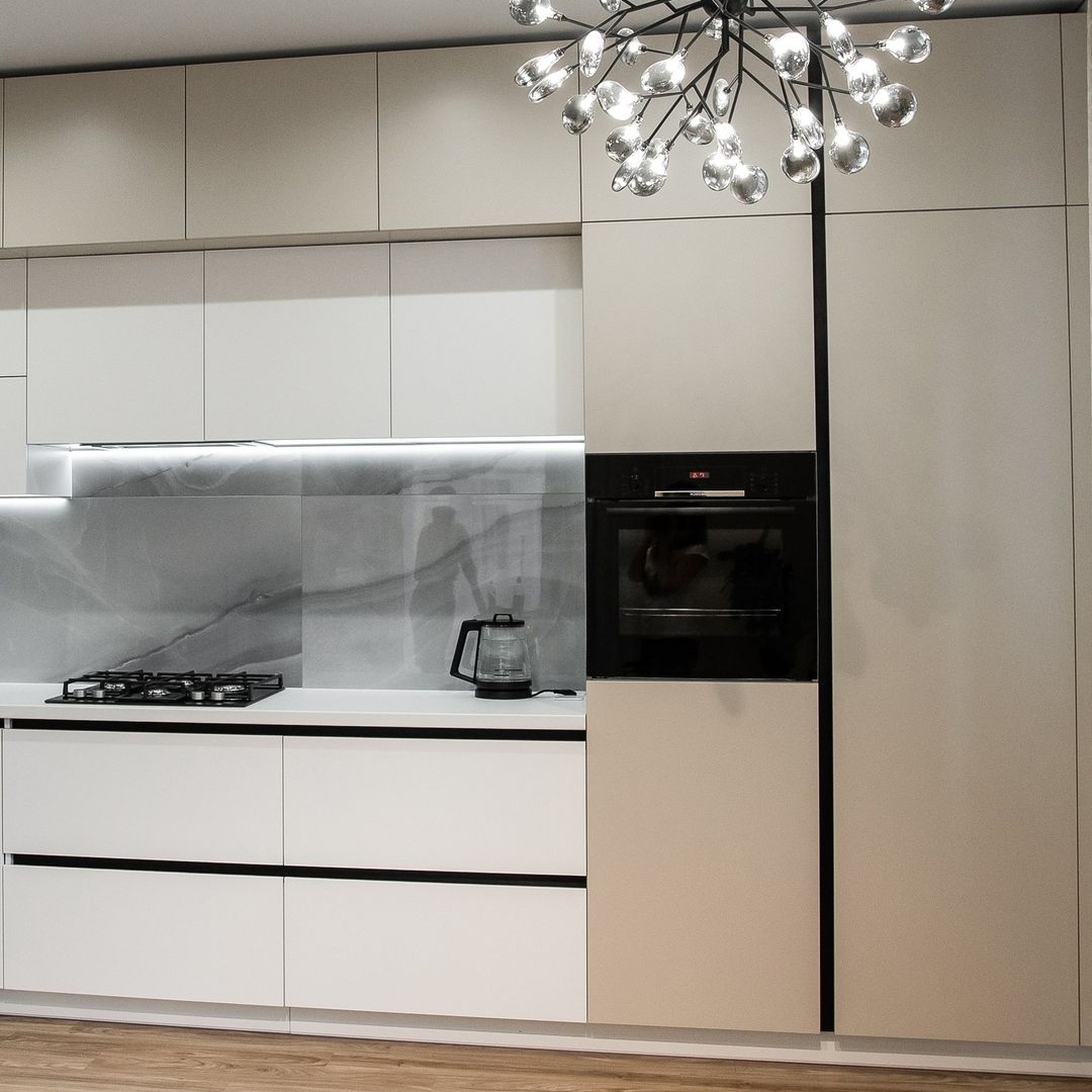 Мягкие линии фасадов. Черные глянцевые металлические ручки.