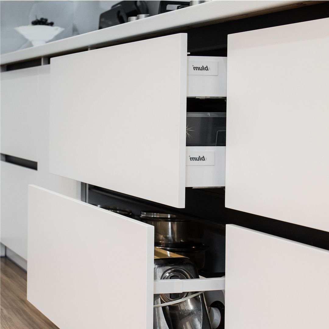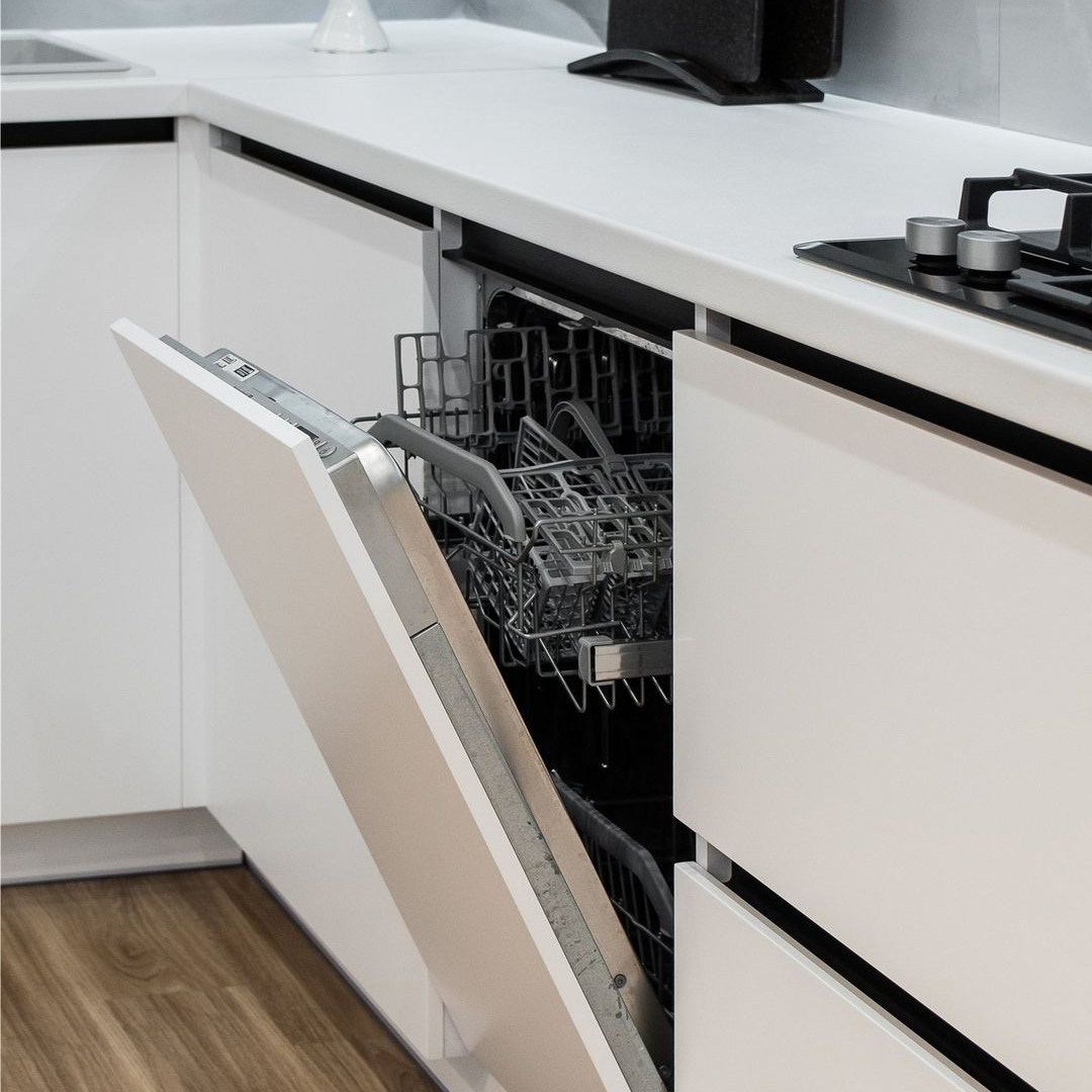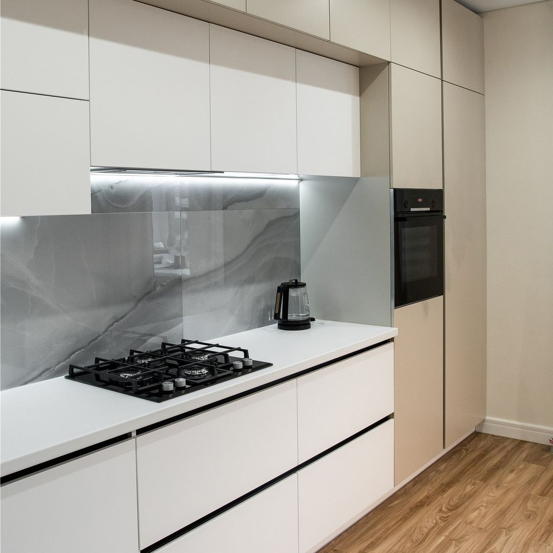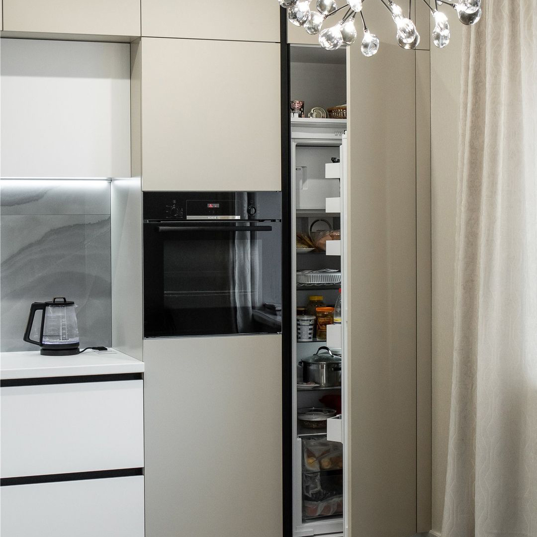Мягкие линии фасадов. Черные глянцевые металлические ручки.