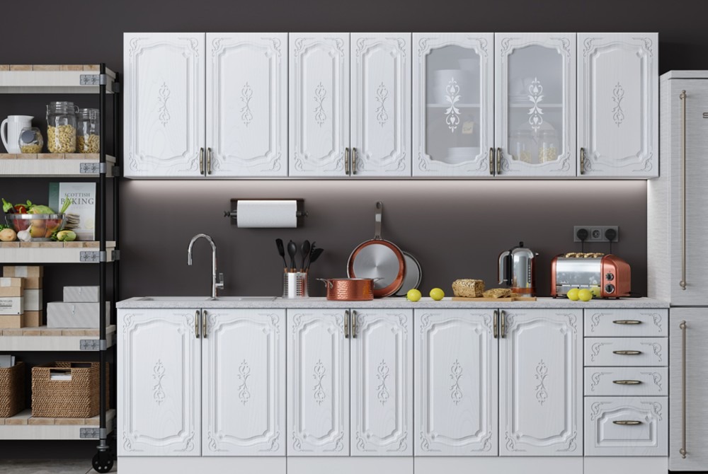 Флореаль- кухня в классическом стиле с рельефным рисунком на фасадах.
