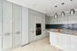 Сочетание глянцевой поверхности и древесной текстуры фасадов.