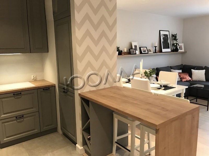 Кухонный гарнитур «Гармония» максимально-функционально использует имеющееся пространство комнаты. Кухня исполнена в сочетании цвета теплого дерева и темно-серого оттенка. В дизайне мебели прослеживаются элементы стиля «кантри». Кухня изготовлена со скрытыми креплениями и фурнитурой по немецкой технологии "Фолдинг".