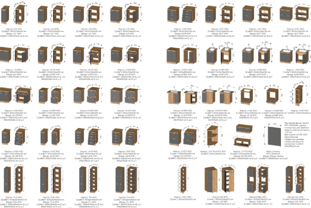 Кухня модульная. Размеры модулей верхних, нижних, пеналов найдете на фото под основной картинкой.