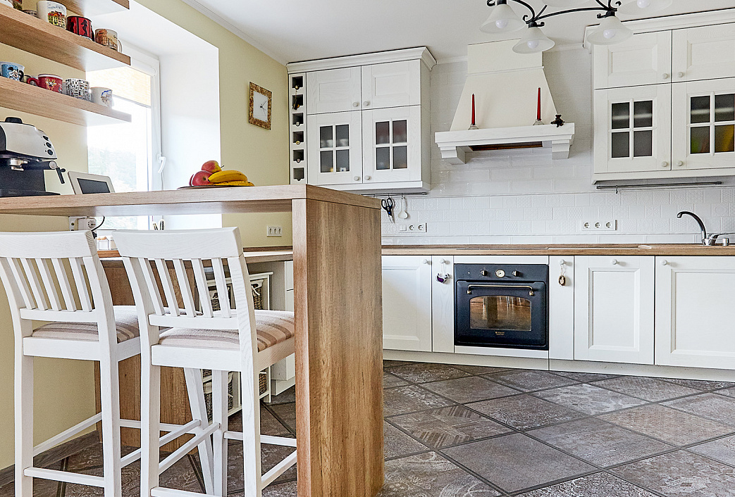Деревянная столешница. Ниши для техники. Большая рабочая зона.
