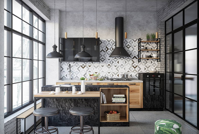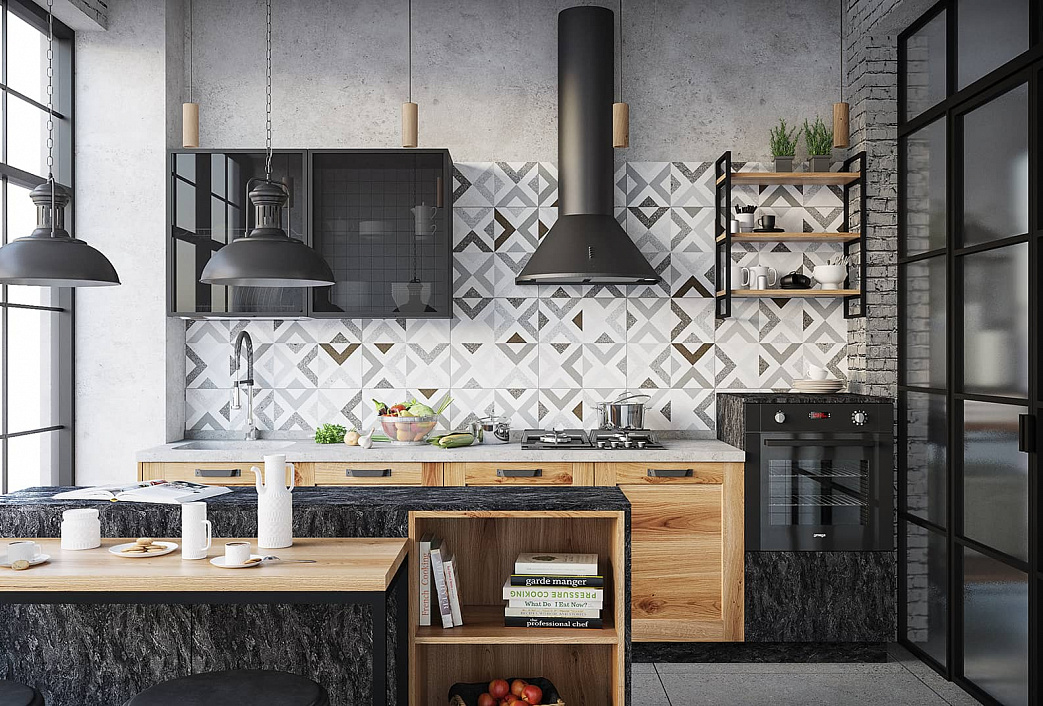 Современный кухонный гарнитур из ДСП в скандинавском стиле.