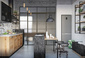 код 119596Прямая кухня с островом в темных графитовых тонах.