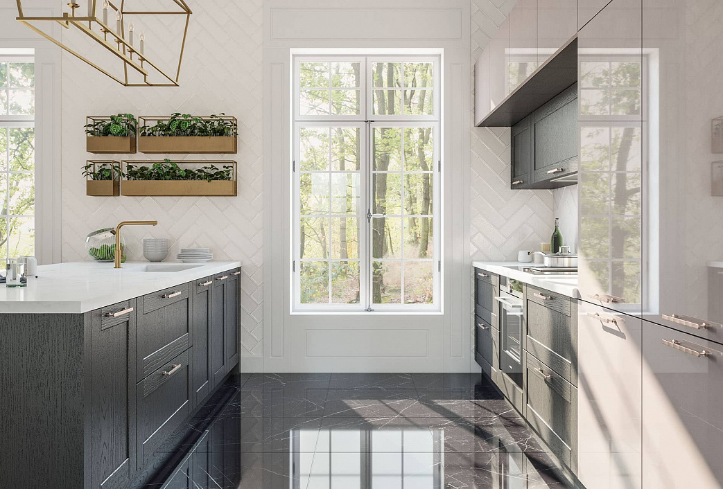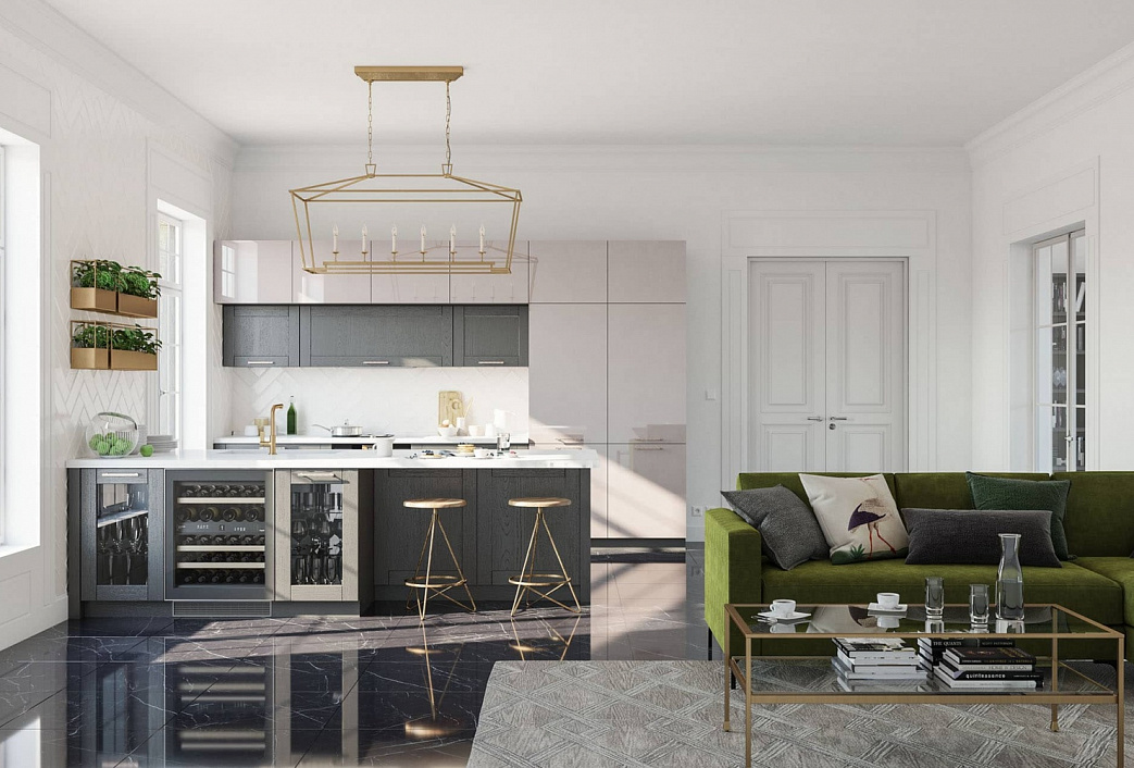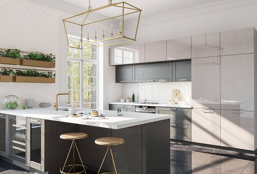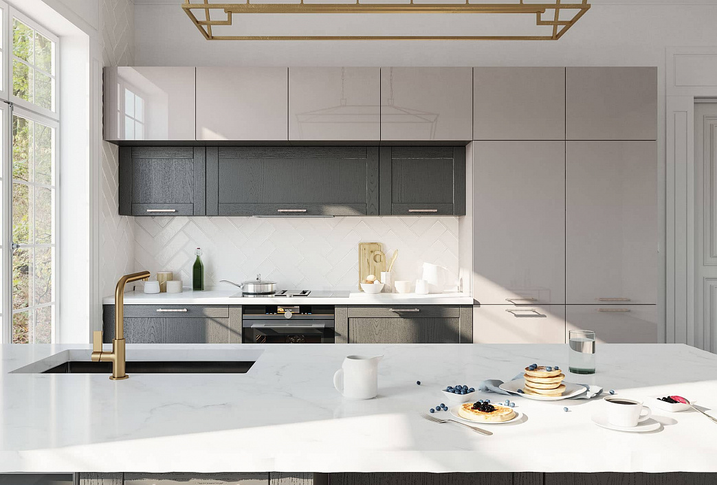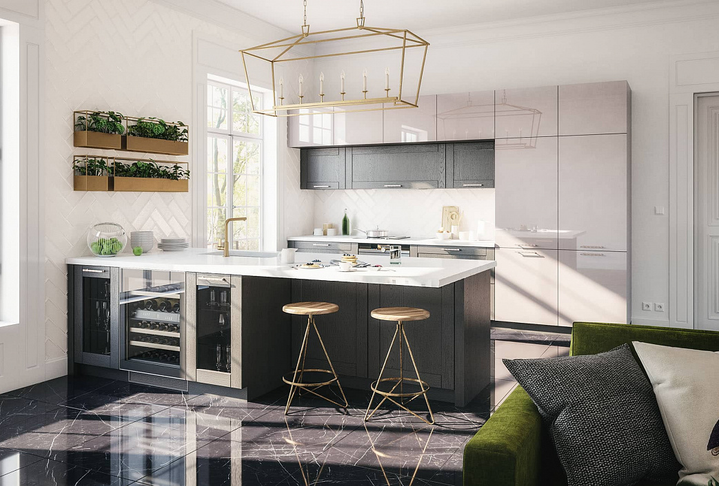 Кухня Савойя выглядит дорого и шикарно за счет своей простоты, строгости форм и грамотного цветового решения.