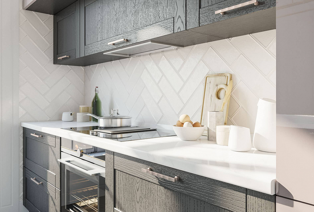 Встраиваемая кухня Монтанья из ЛДСП с серыми фасадами