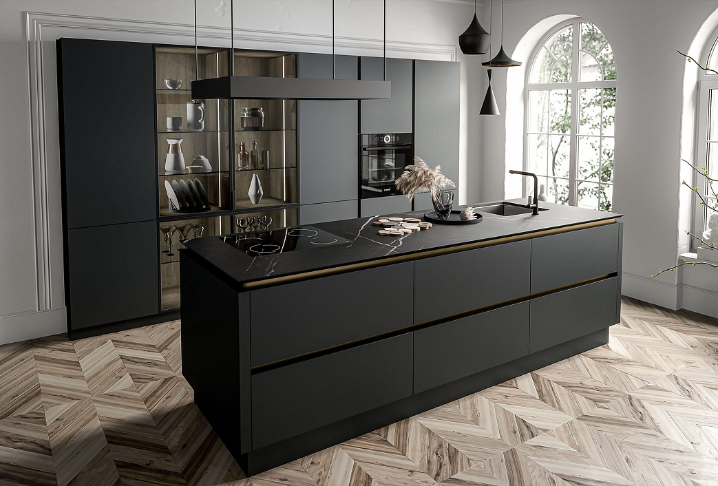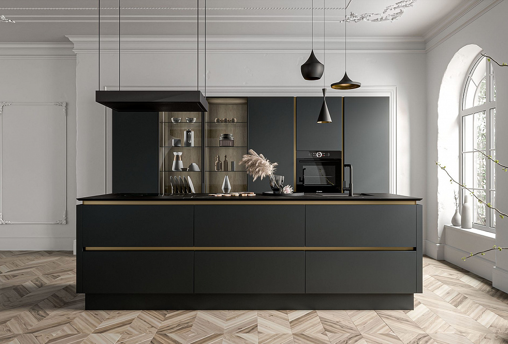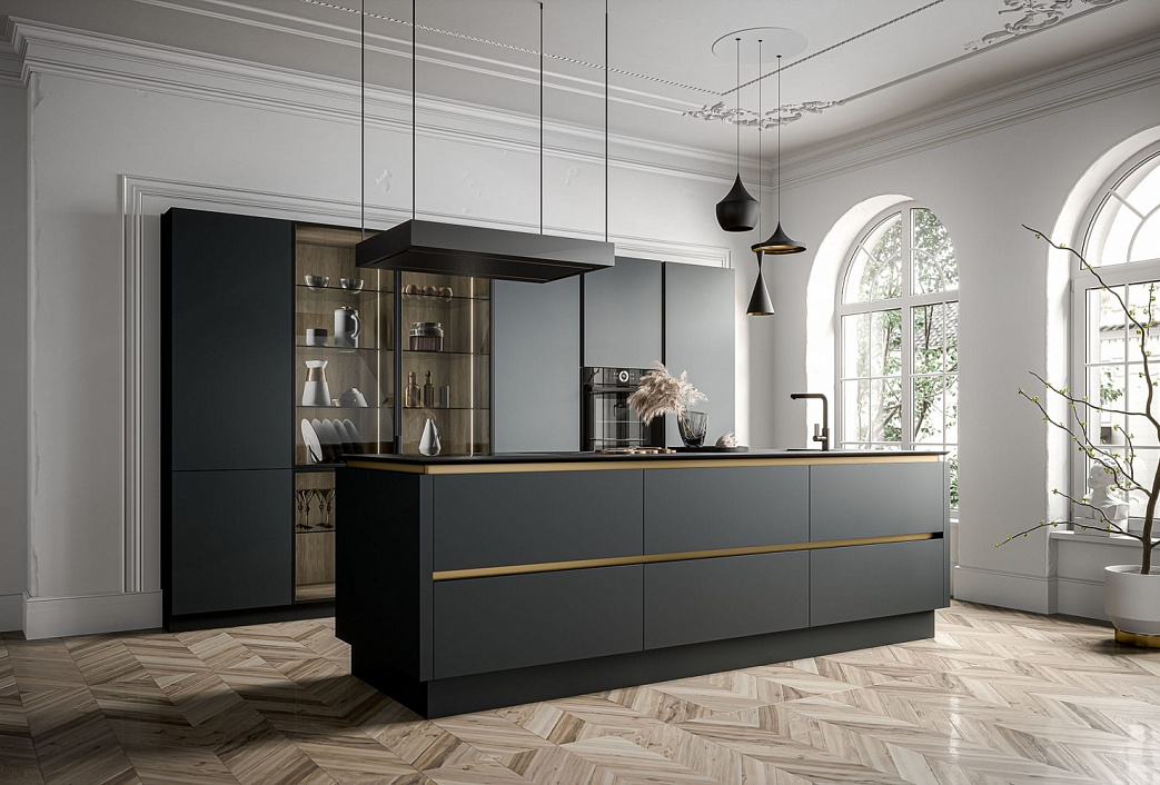Кухня GeosIdeal «МОДО - АНТРАЦИТ С ОСТРОВОМ»
