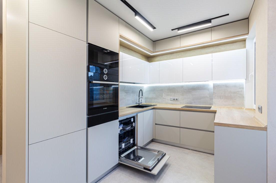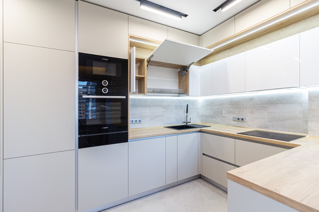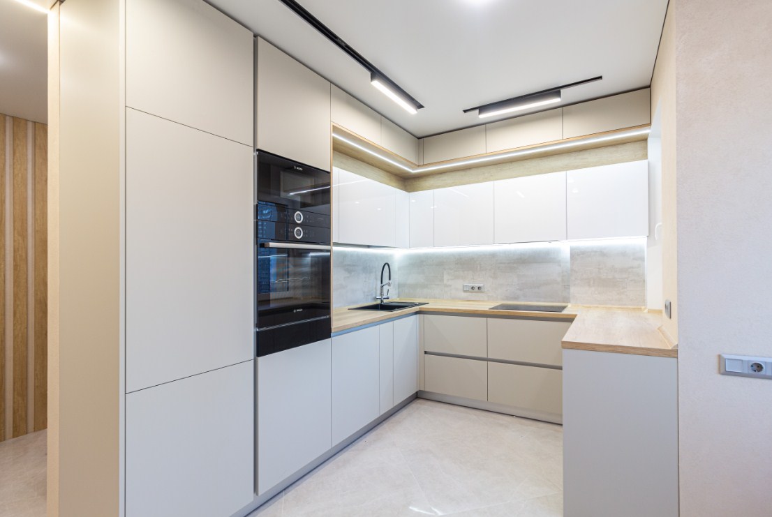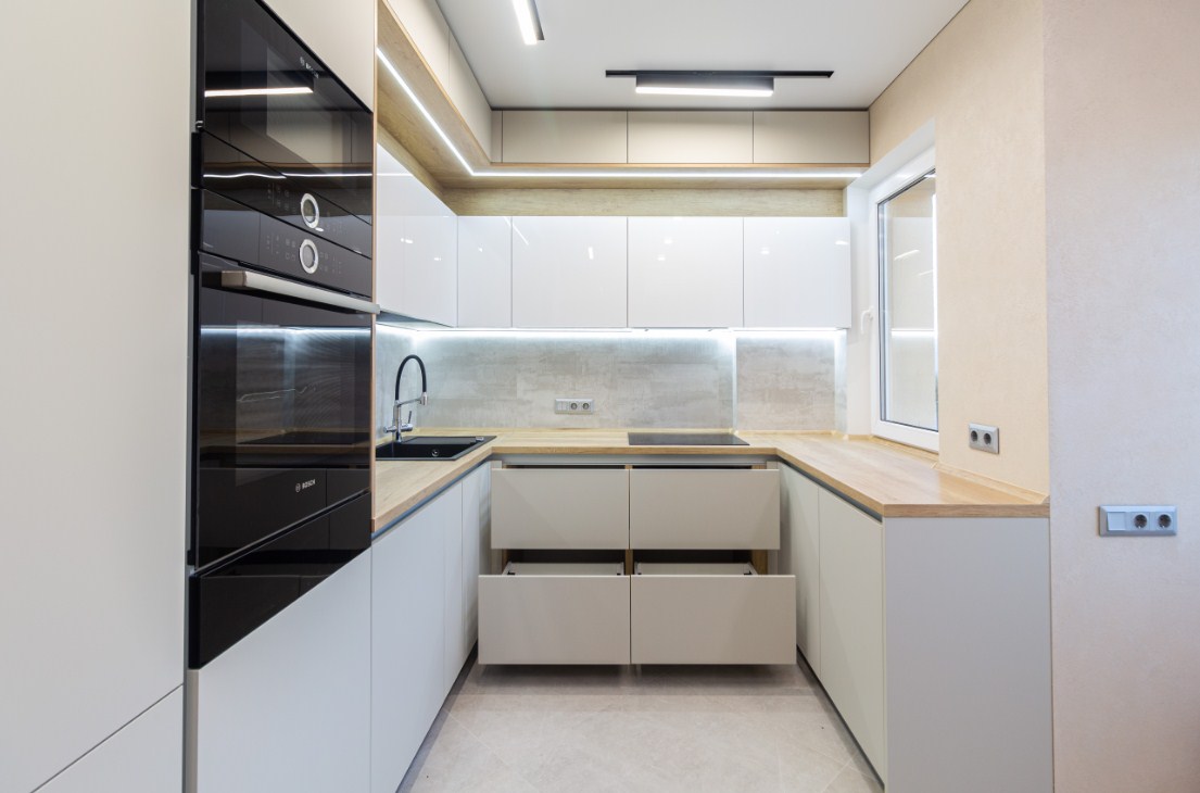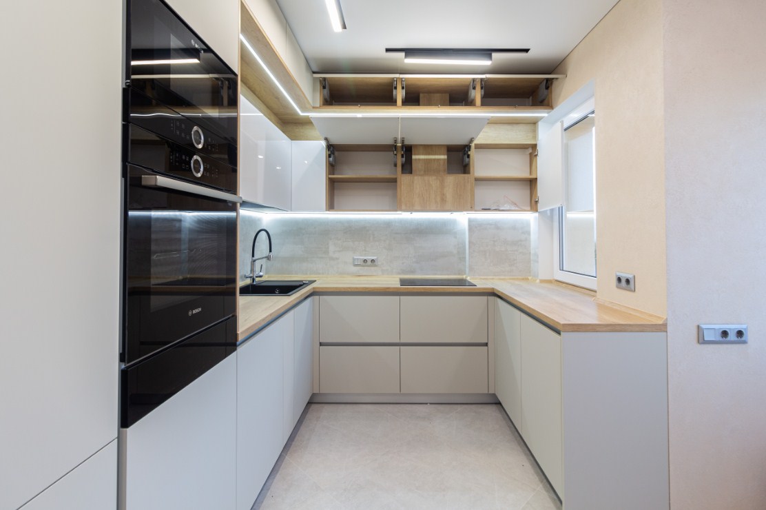 П-образная кухня с матовыми фасадами из МДФ