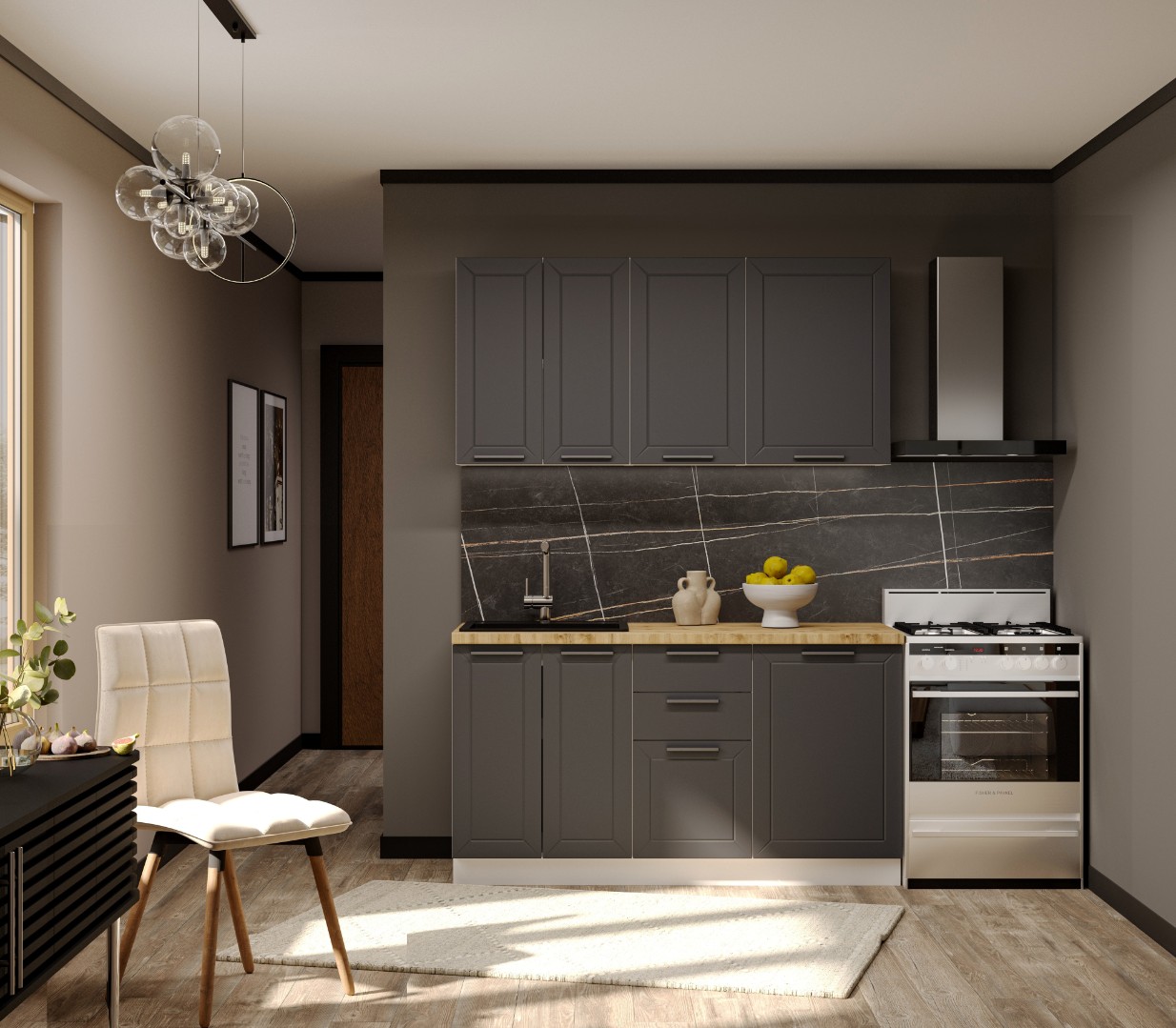 Кухня прямая «Mix Top-6» 2.1 м, дуб крафт золотой-графит серый