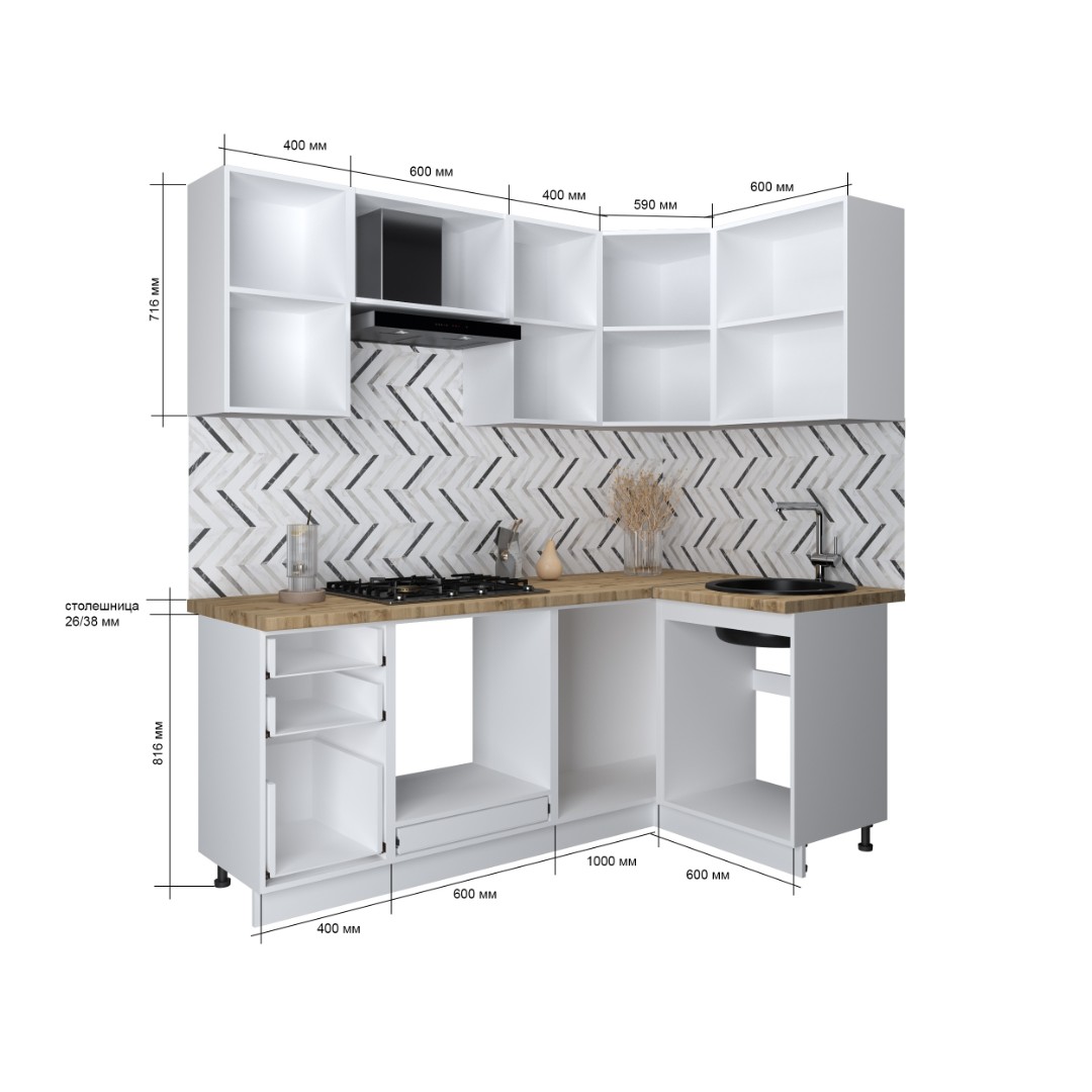 Размер: 2500х1700 мм. Белый цвет фасадов.