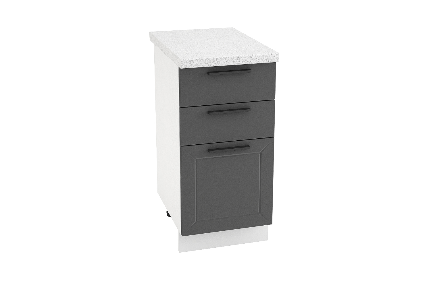 Практичный и надежный гарнитур в сочетании темного и светлого цветов фасада.
