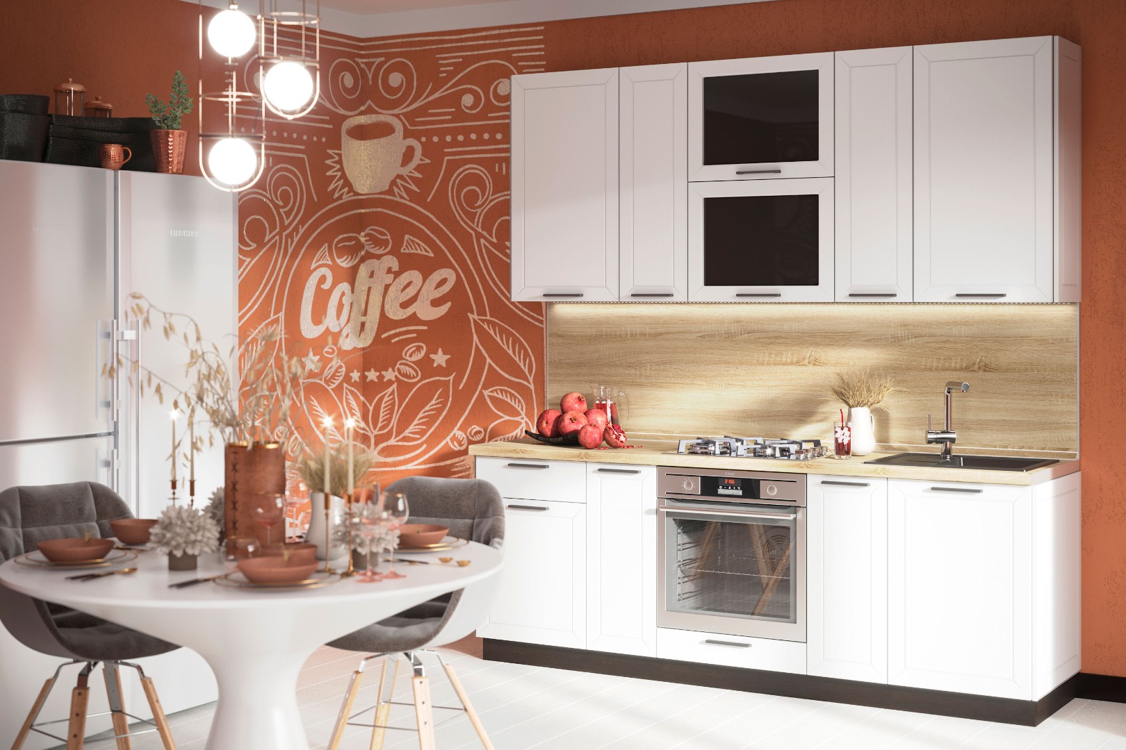 Материалы используемые для изготовления наших кухонь соответствует экологической норме Е1, безопасны для использования, в том числе и для детей. Основными плюсами ЛДСП являются высокая прочность, стойкость к температуре, и долгий срок службы;