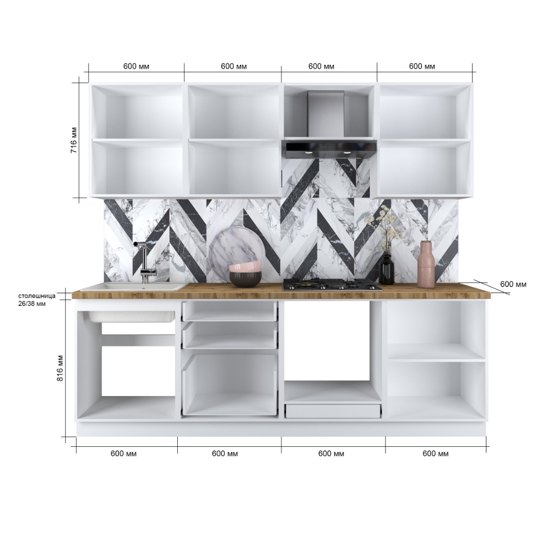 Состоит из модулей 60+60+40. Сушка и мойка не входят в комплект.