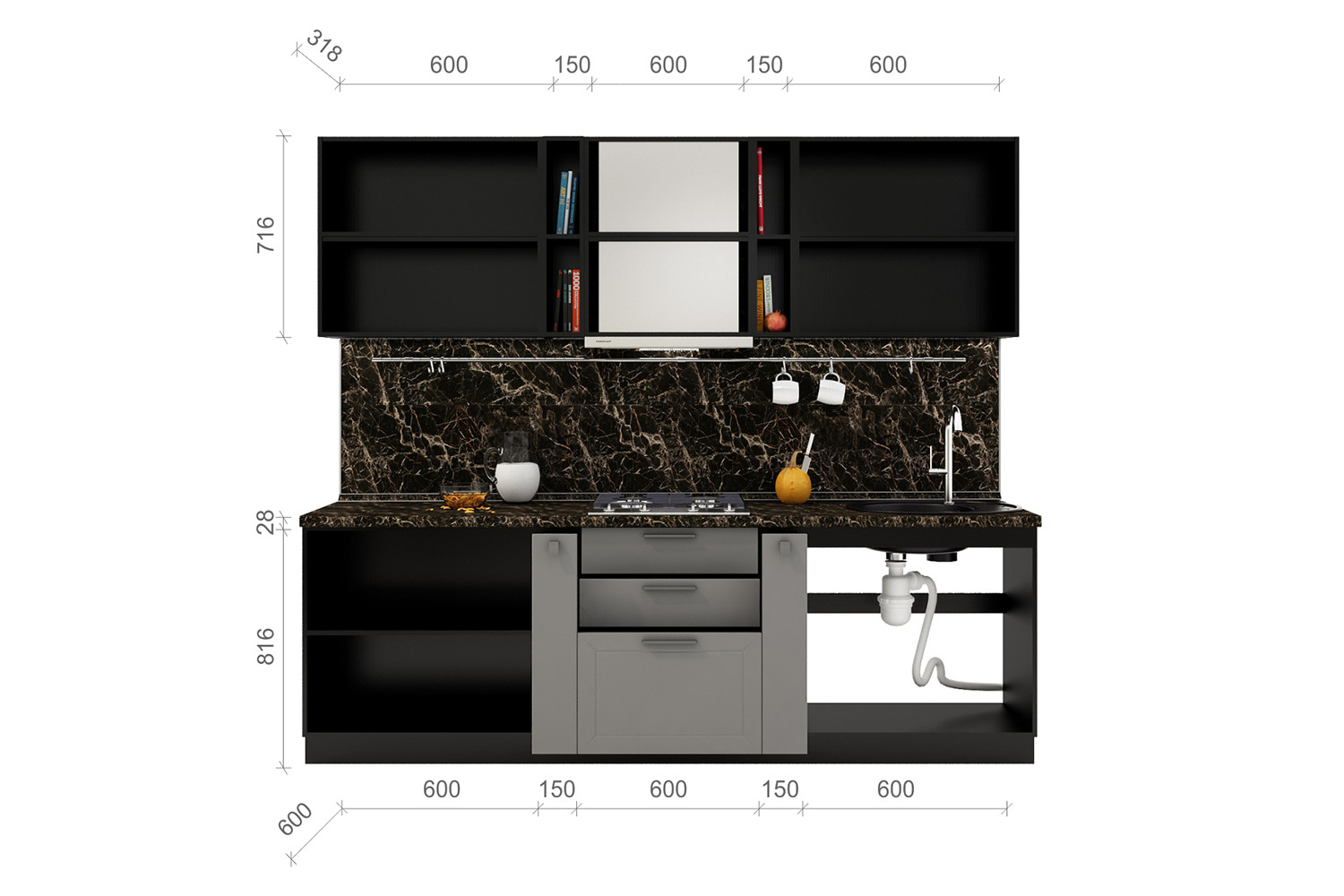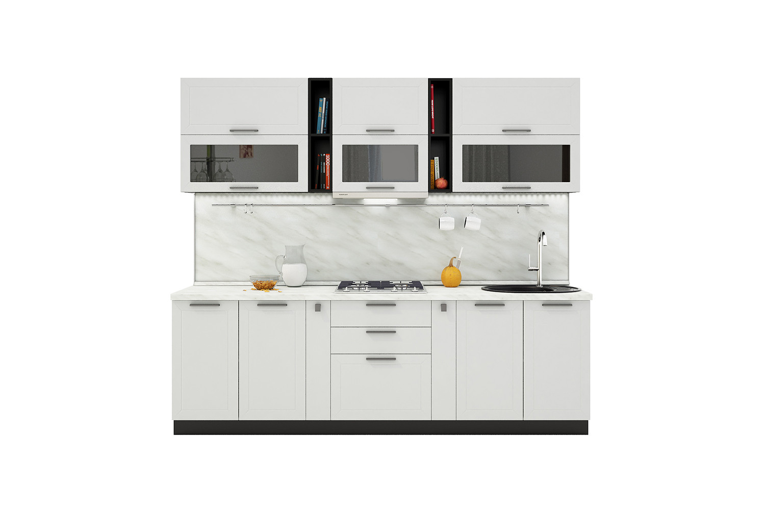 Общая ширина кухни: 1800 мм.