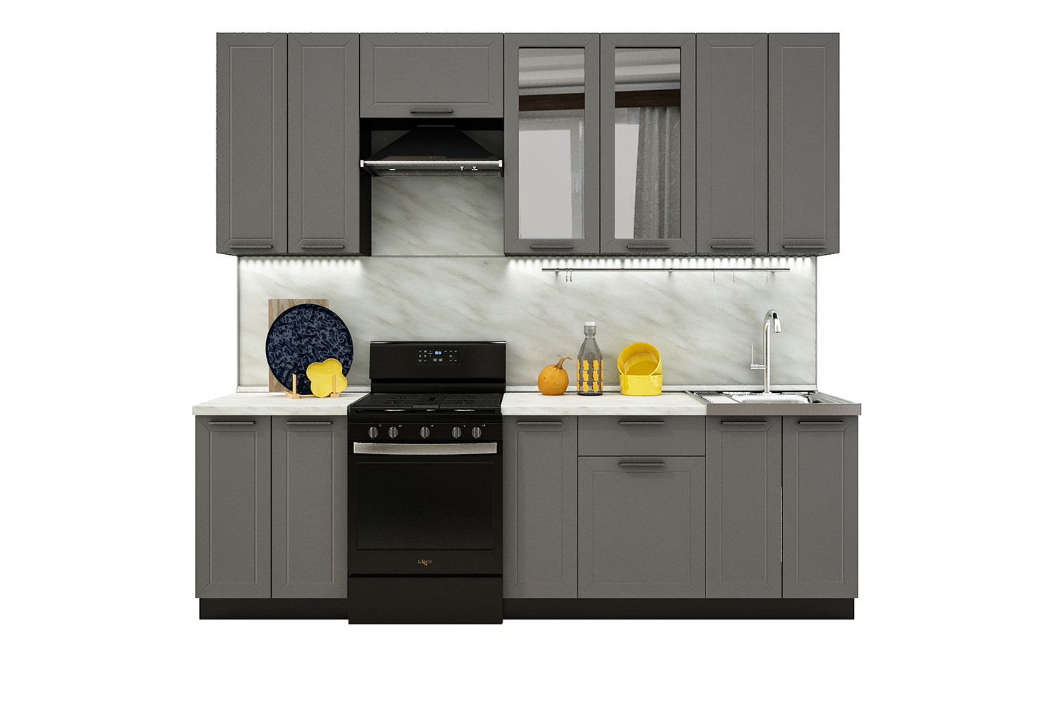 Кухня шириной 2.5 метров с матовыми фасадами. Мойка в комплект не входит.