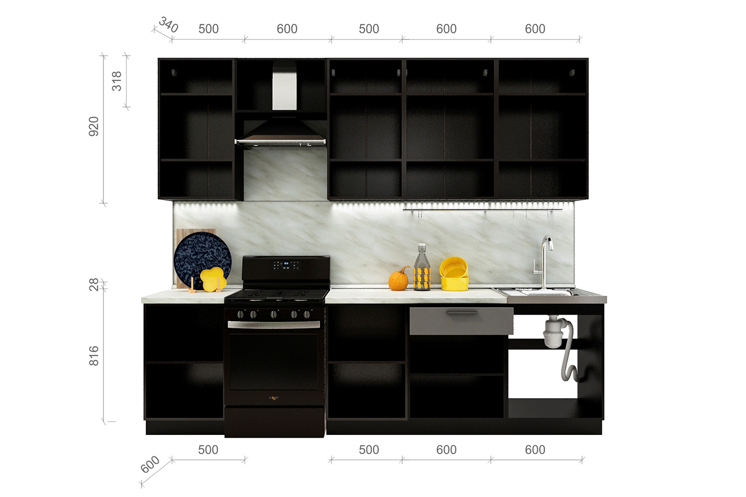 Нижние фасады матовые черные. Дополнительная рабочая поверхность.