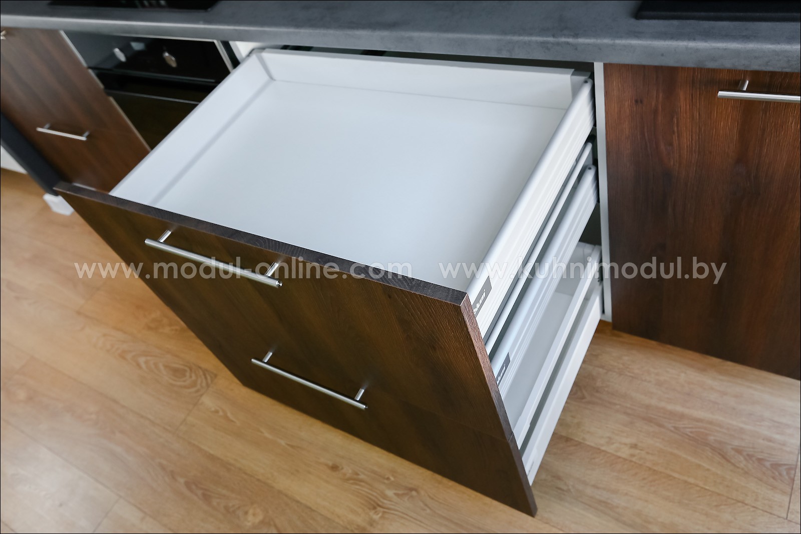 - Фурнитура. Выдвижная система Hettich Quadro Silent System бесшумного закрывания (Германия), предусмотрены подъемные механизмы BLUM (Австрия), петли с пневматическим доводчиком BOYARD.