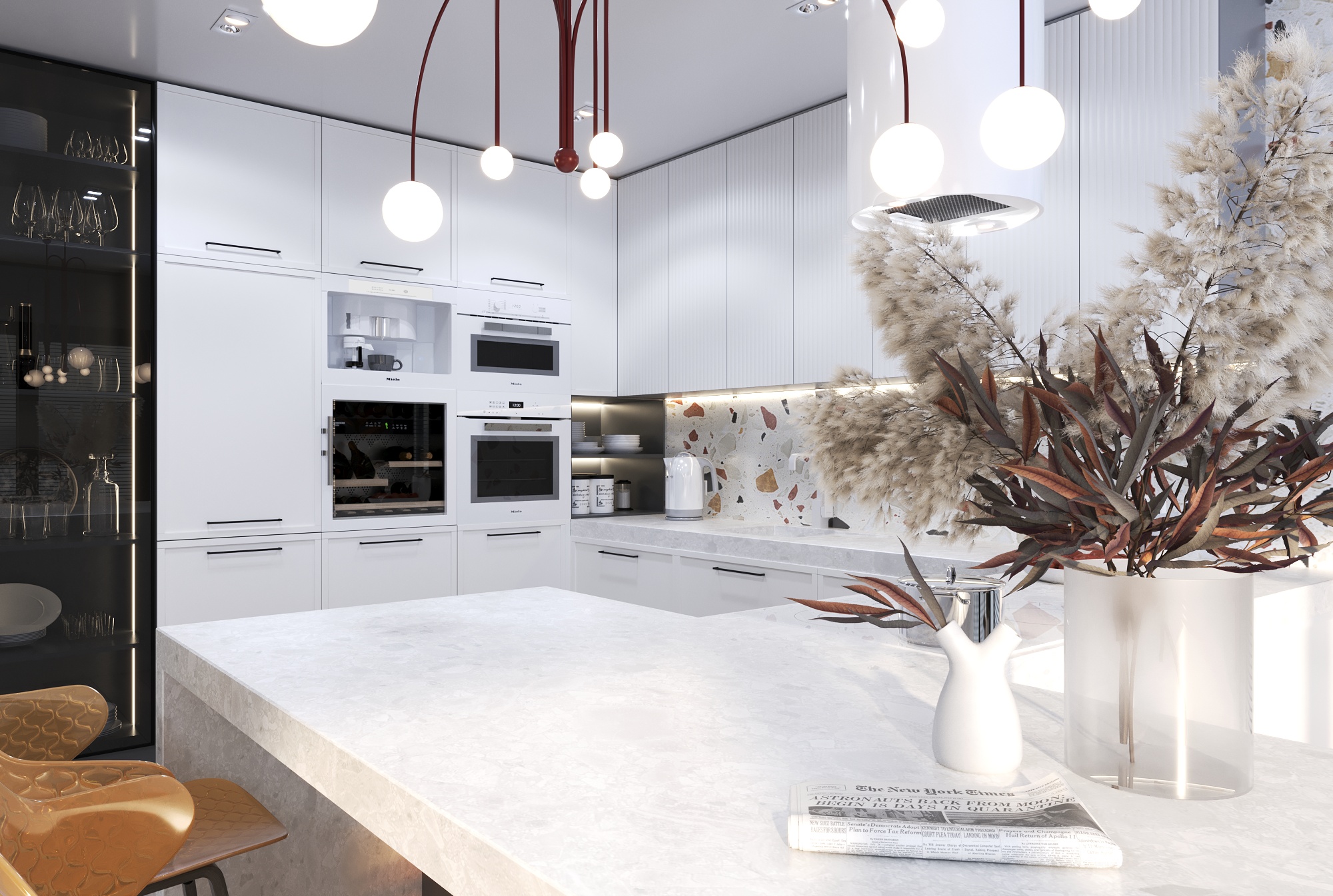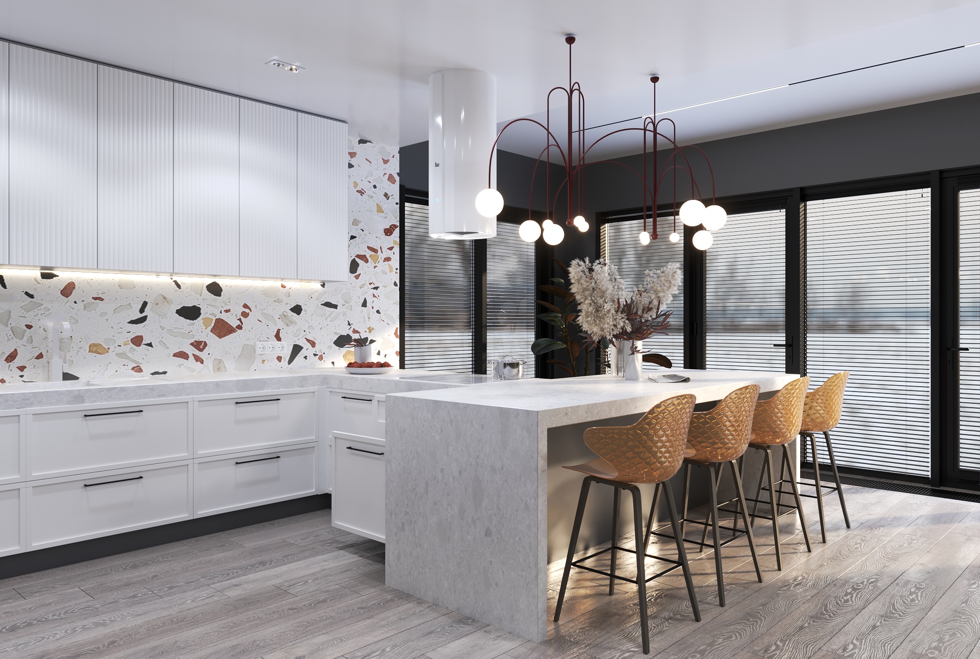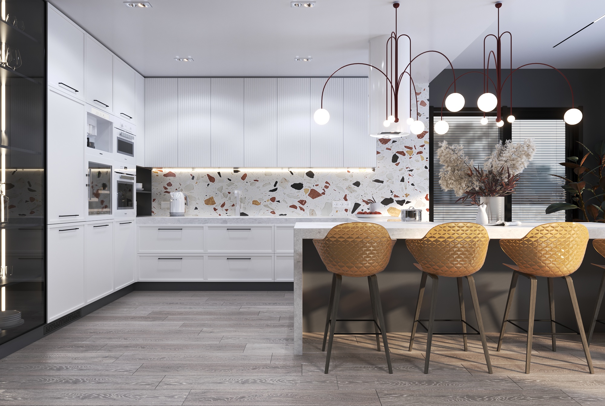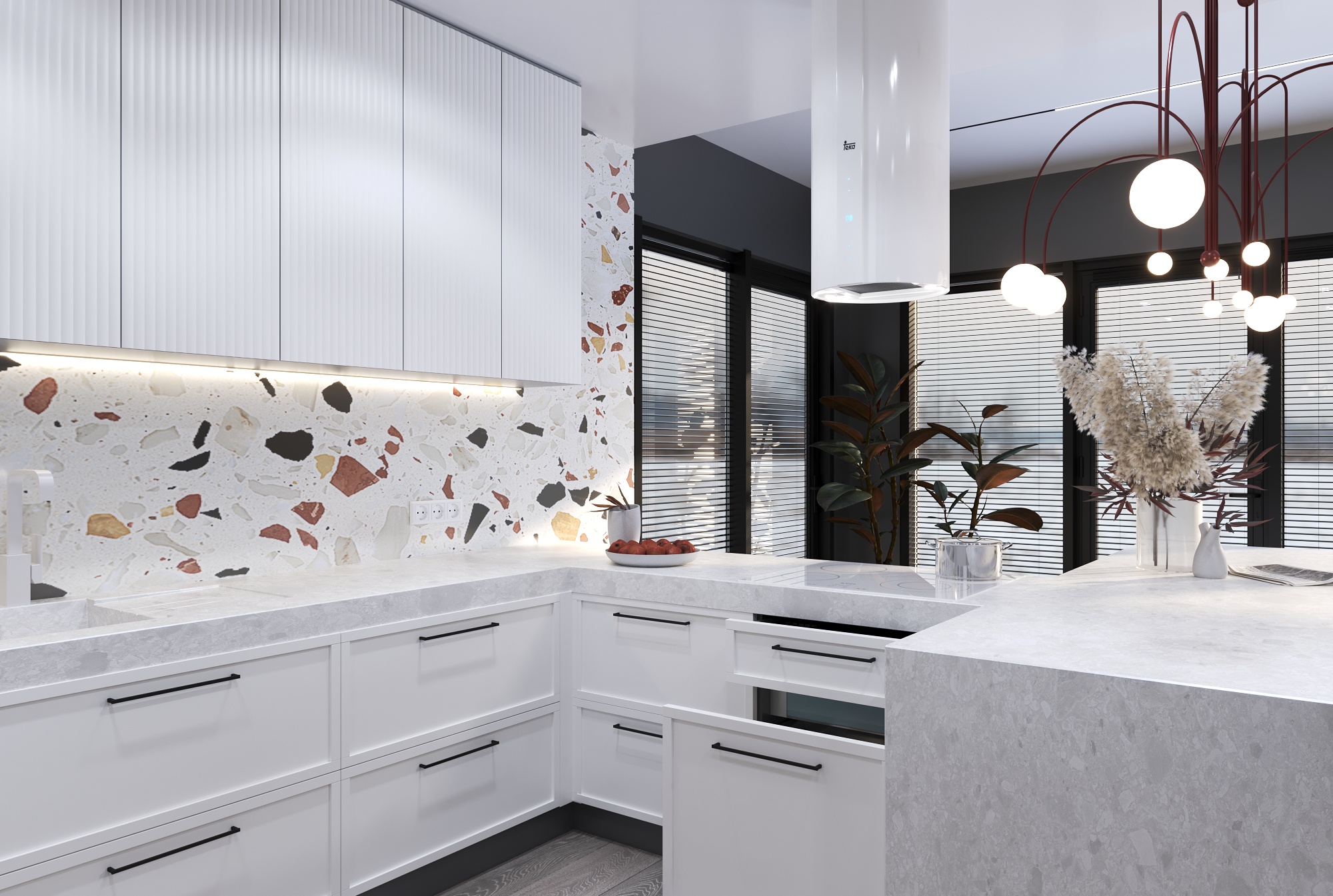 Комбинированный серо-белый цвет. Столешница цвета сонома.