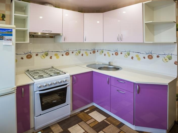 код 75336Столешница: постформинг. Компактные размеры. Глянцевый бело-розовый фасад.