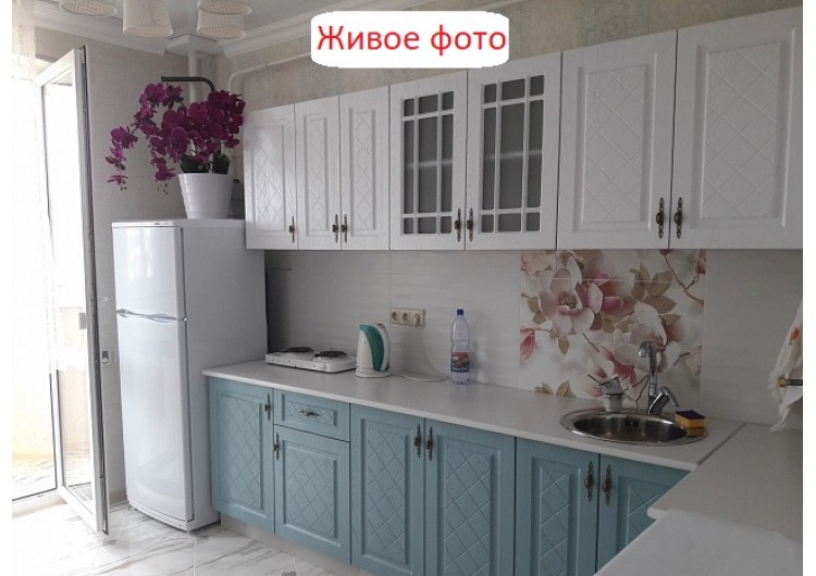 Компактный и функциональный кухонный гарнитур. Изготовлен из ЛДСП.