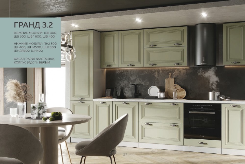 Данное дизайнерское решение наделяет помещение особым благородством, аристократичным видом и превращает его в образец эстетики и гармонии. Гранд характеризуется широкой базой элементов, которые, в свою очередь грамотно и рационально позволят подойти к организации пространства. Модульная кухня с светлыми фасадами, строгим рисунком в античном стиле. Большой выбор различных модулей позволяет «конструировать» кухню по Вашим пожеланиям. Размеры модулей верхних, нижних, пеналов найдете на фото под основной картинкой.