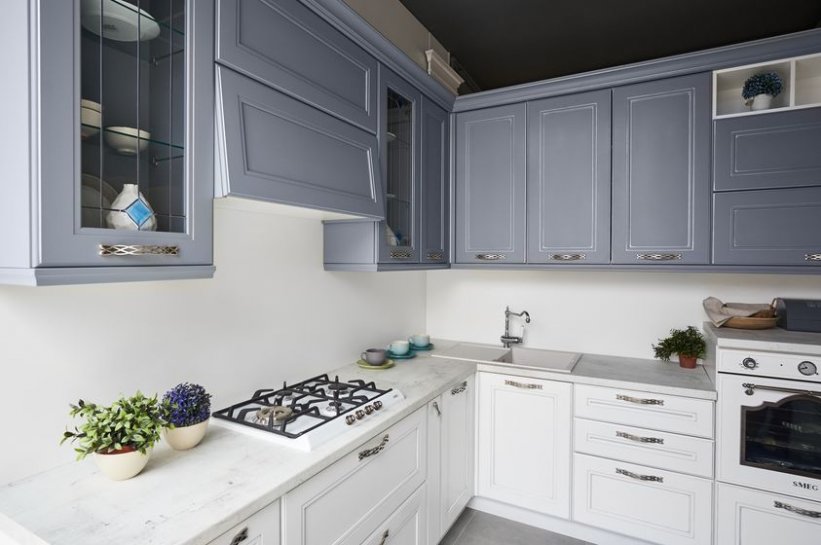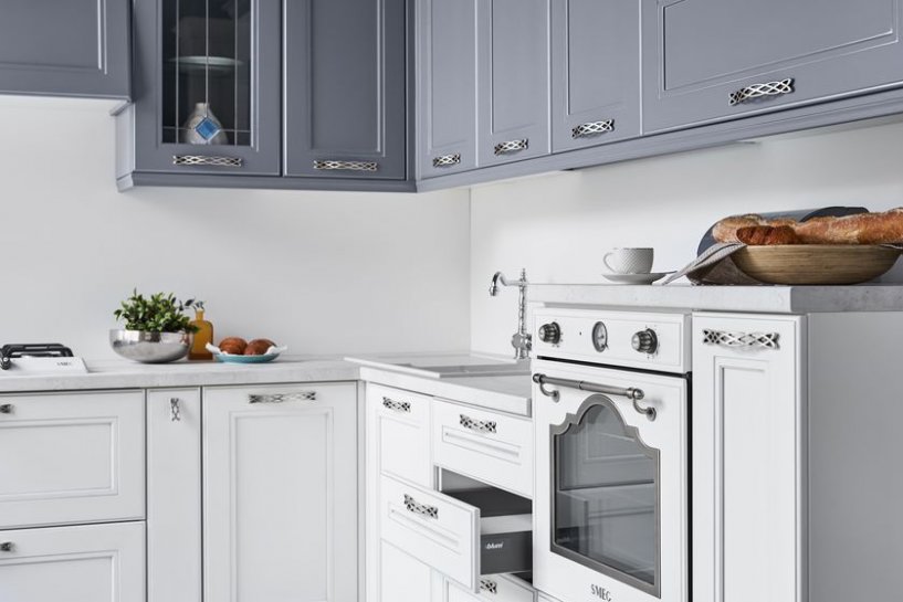 Мягкие линии фасадов. Черные глянцевые металлические ручки.
