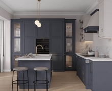 Ниши для кухонной техники, множество шкафчиков для хранения, удобная фурнитура.