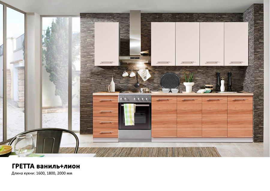 Длина кухни: 1650 мм + шкафная группа 1700 мм.