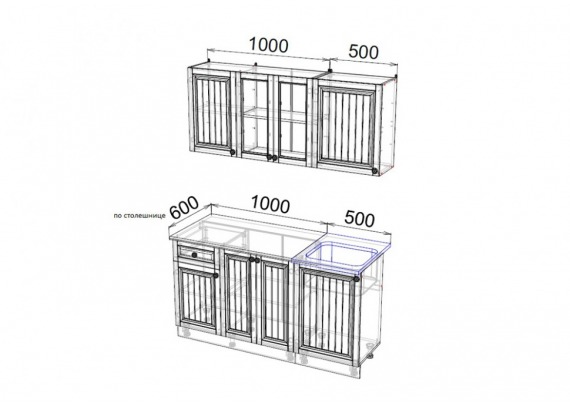 - единая столешница на 1000мм.