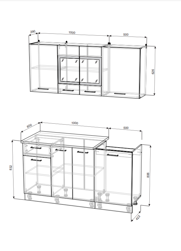 Материал фасада и корпуса: ЛДСП 16 мм. Ширина кухни 210 см.