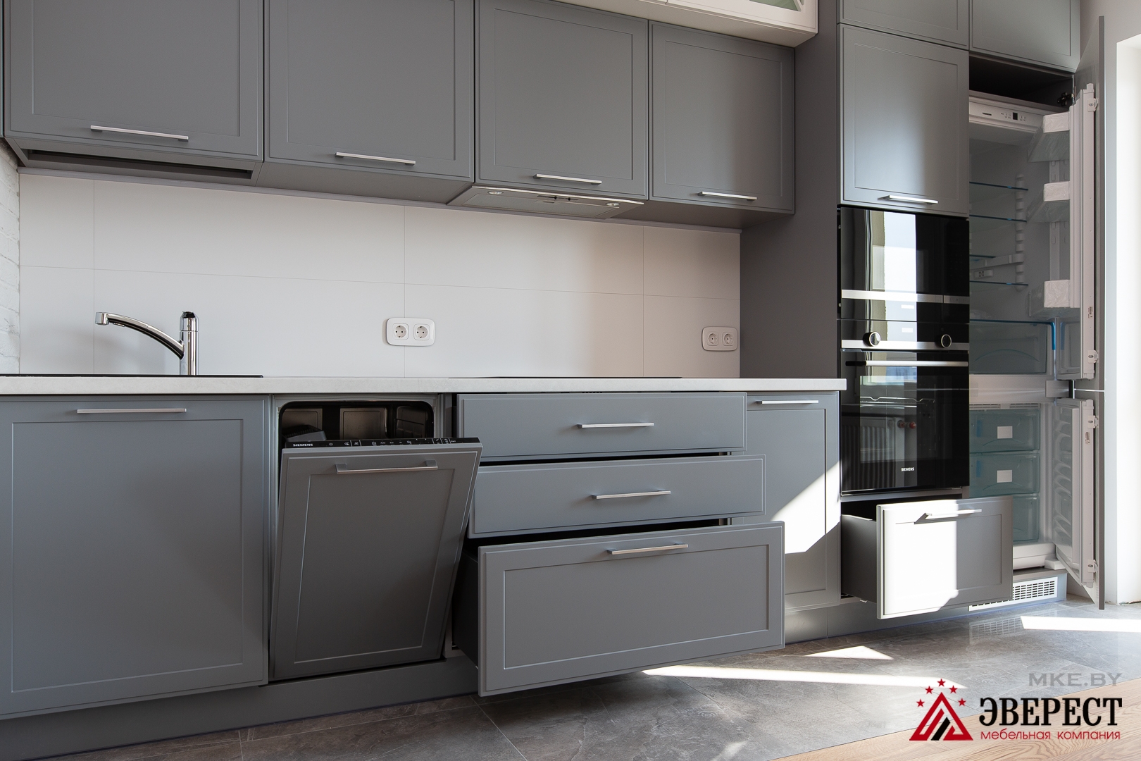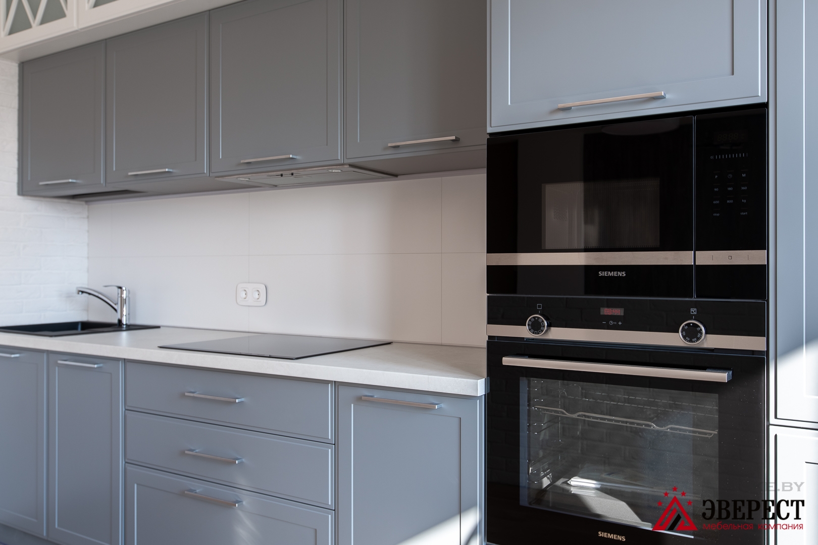 код 103827Классический кухня в современном исполнении. Изготовлена из крашенного МДФ. Фурнитура с доводчиками.