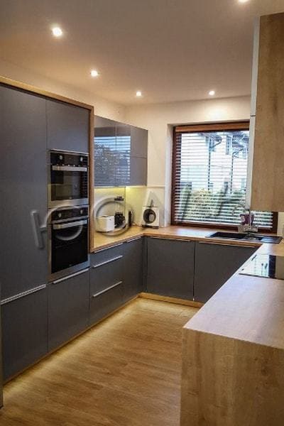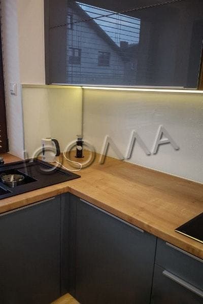 Кухня длиной 160 см. Стильное сочетание цветов фасада.