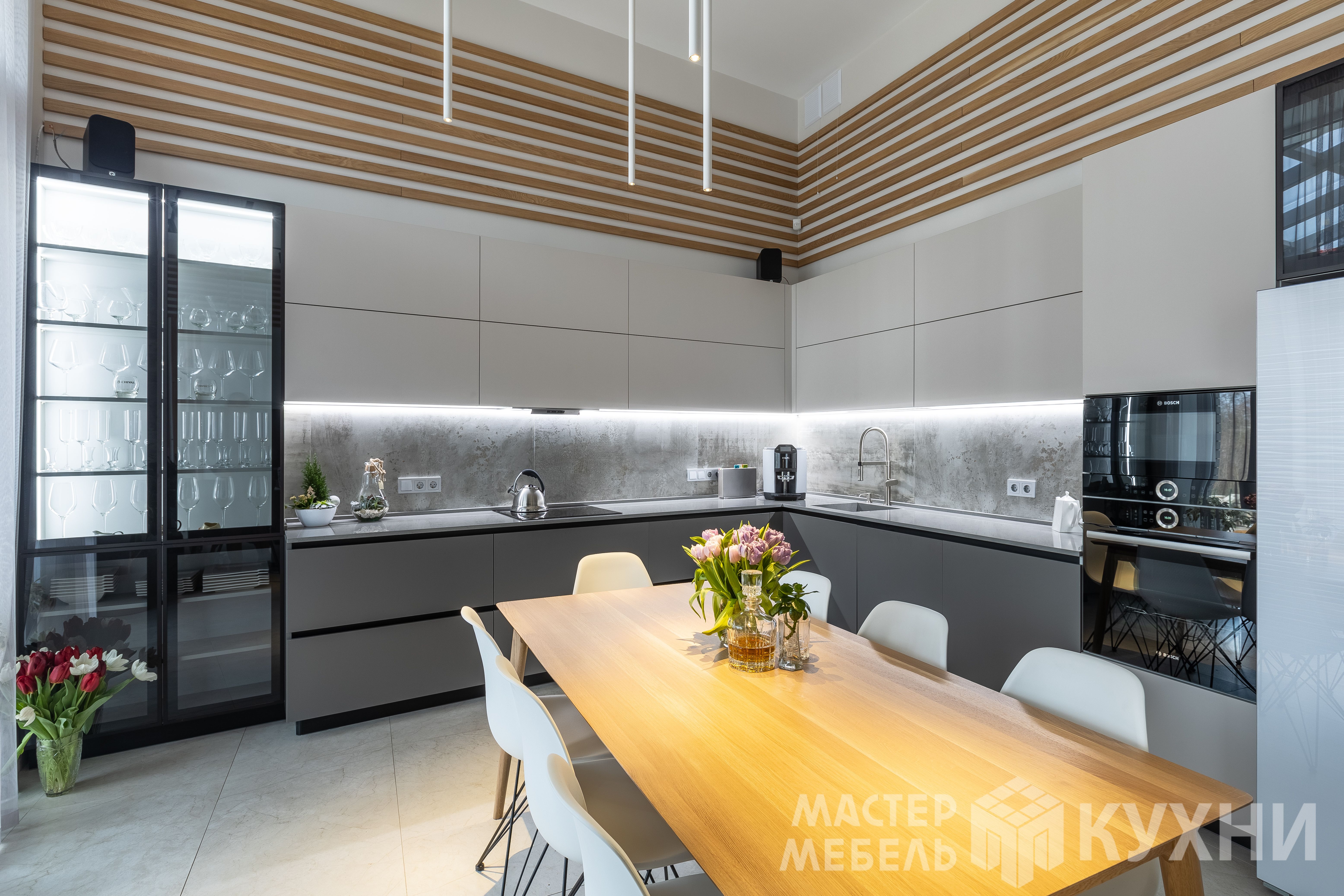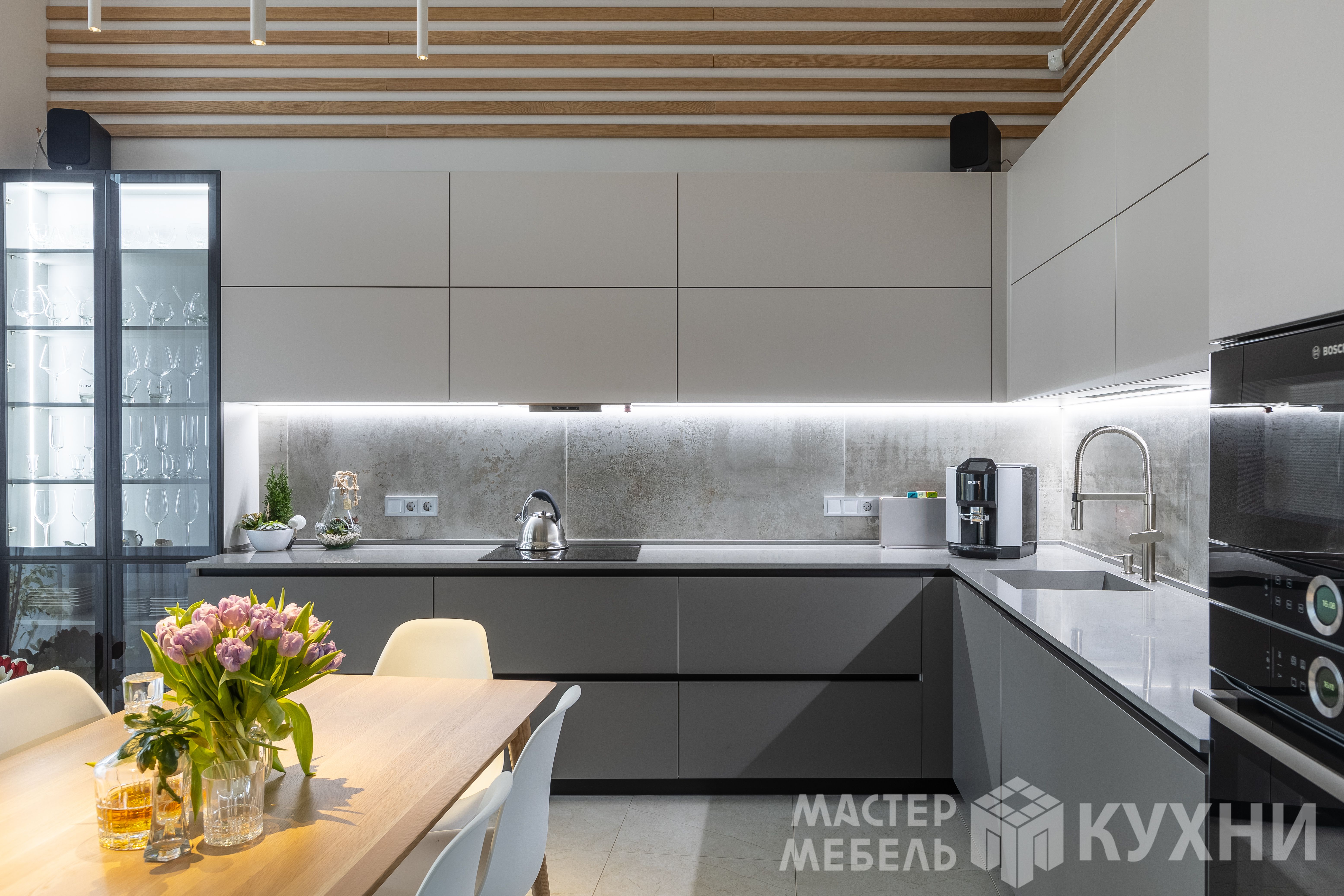 Стильный и современный дизайн, матовые фасады без ручек, качественные и долговечные материалы.