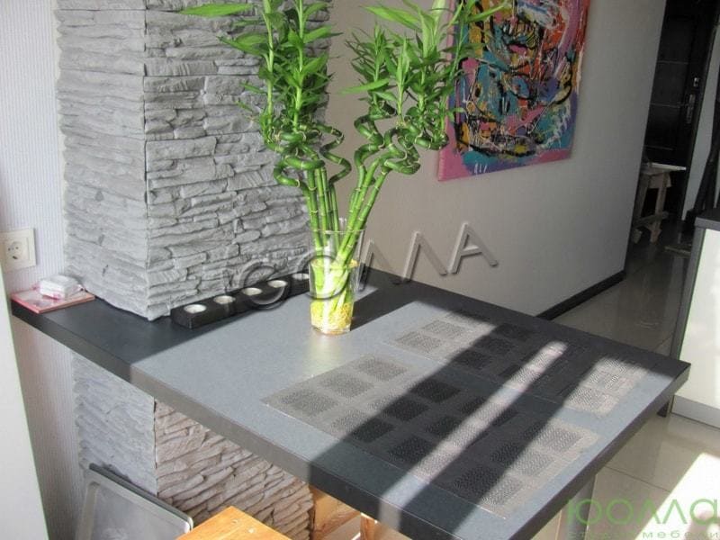 Кухня изготовлена со скрытыми креплениями и фурнитурой по немецкой технологии "Фолдинг".