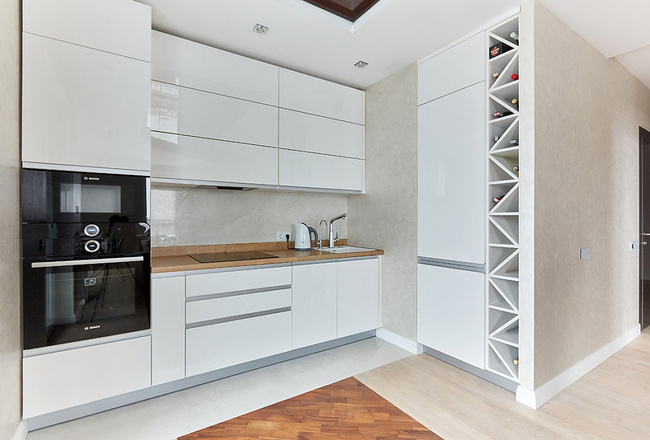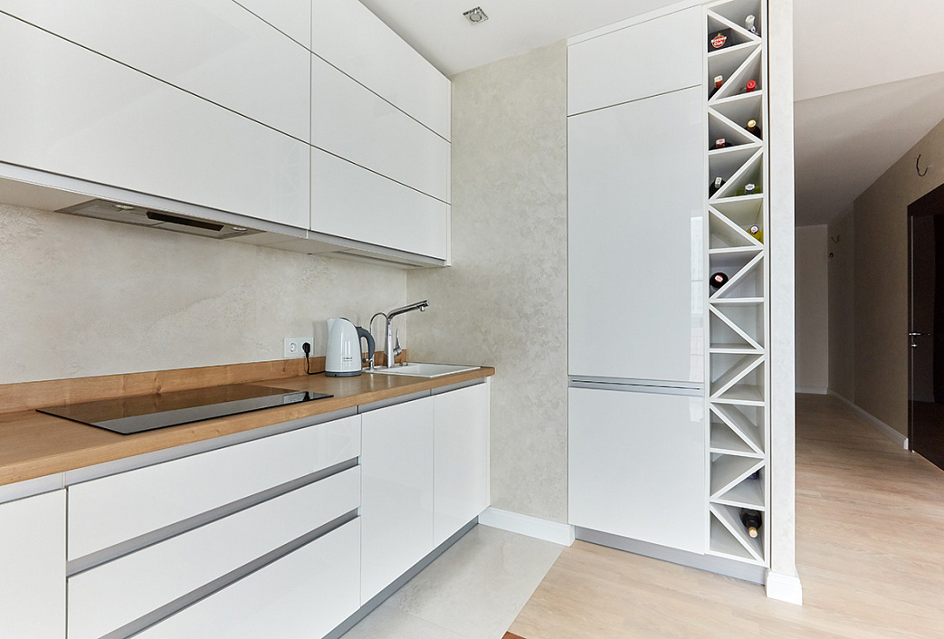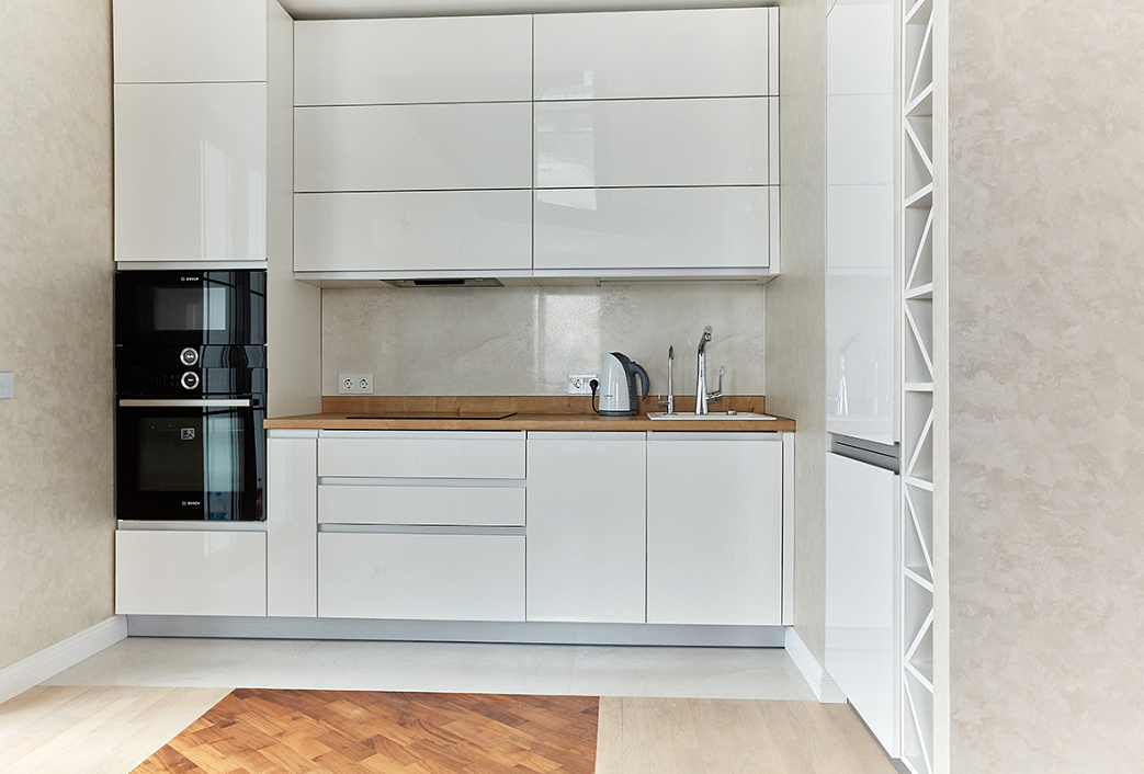 Кухня из акрила пепел без ручек в скандинавском стиле