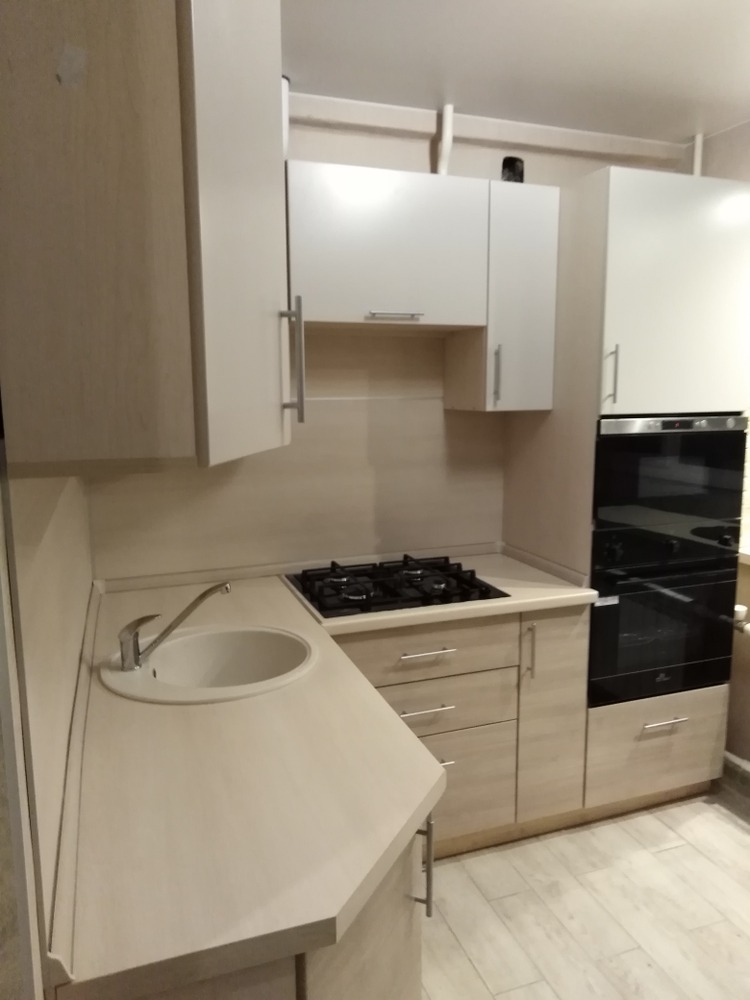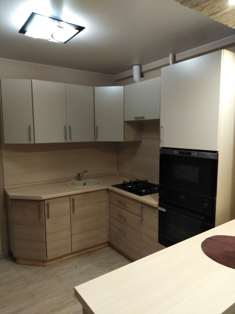 Угловая матовая кухня с комбинированными фасадами