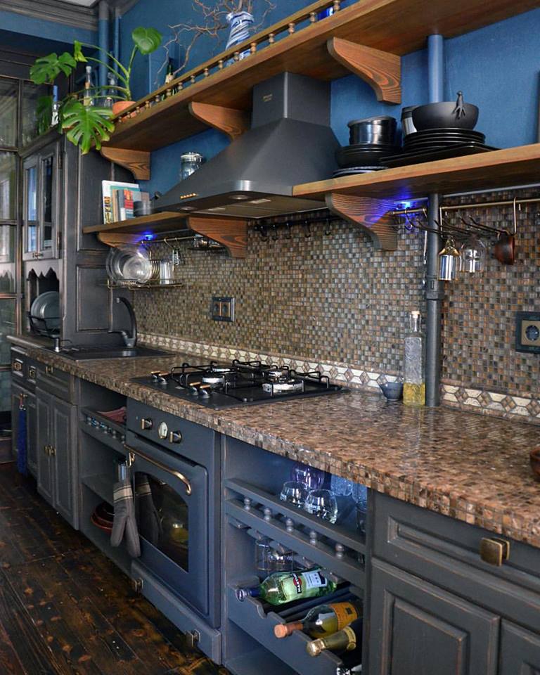 Кухня «Корнелия Мара» 1,6 серый-синий